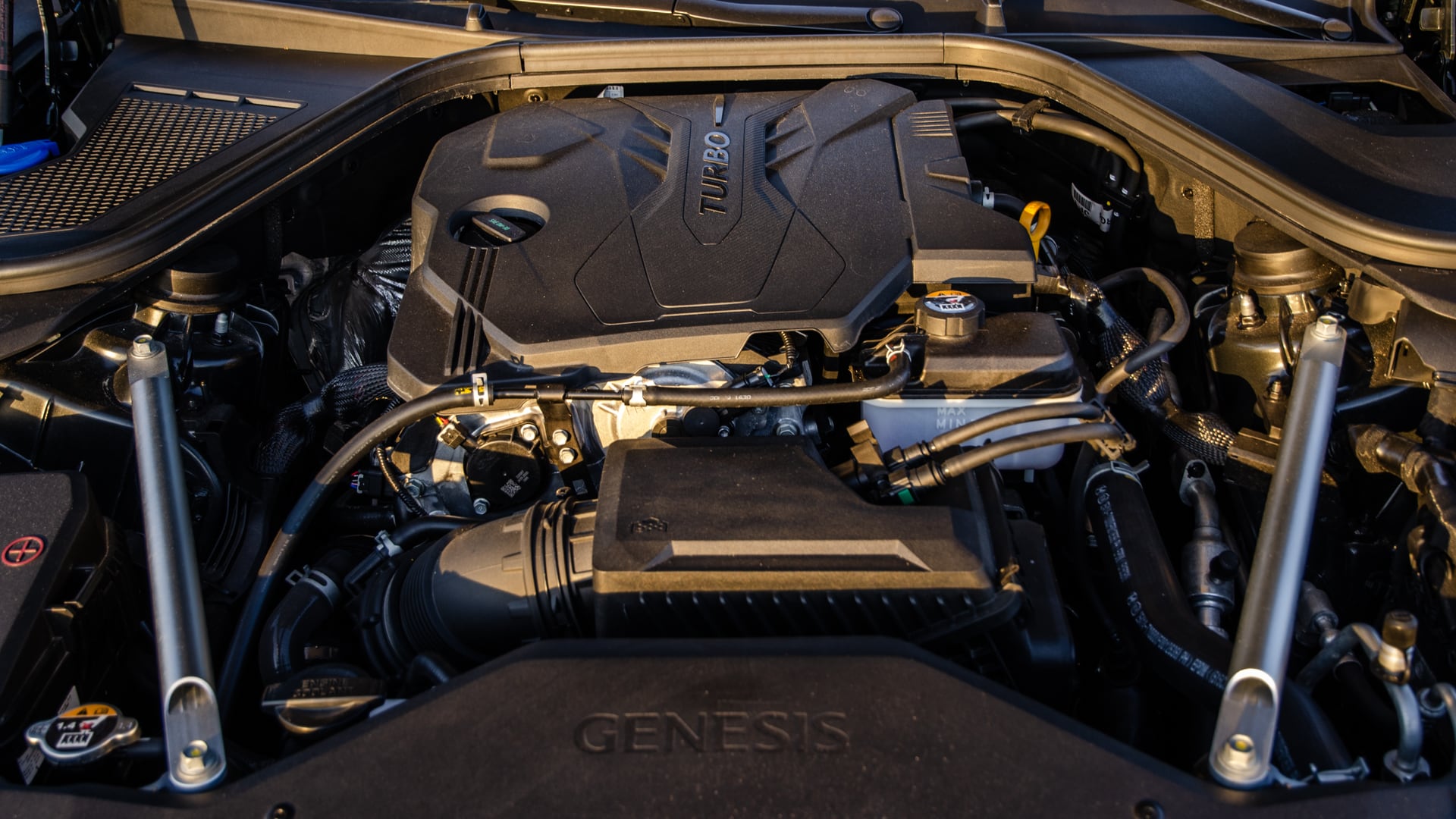 The engine is good, though. A 2.5 liter turbocharged four-cylinder powers the Genesis G80 2.5T and it makes 300 horsepower and 311 lb-ft of torque, making it the most powerful four-cylinder car in its class. It feels it, too. The eight-speed auto does a good job of keeping the little engine in its powerband and allows it to hustle the rather large G80 with some urgency. But it never feels exciting or particularly interesting. It’s also a bit coarse at the top end of the rev range.