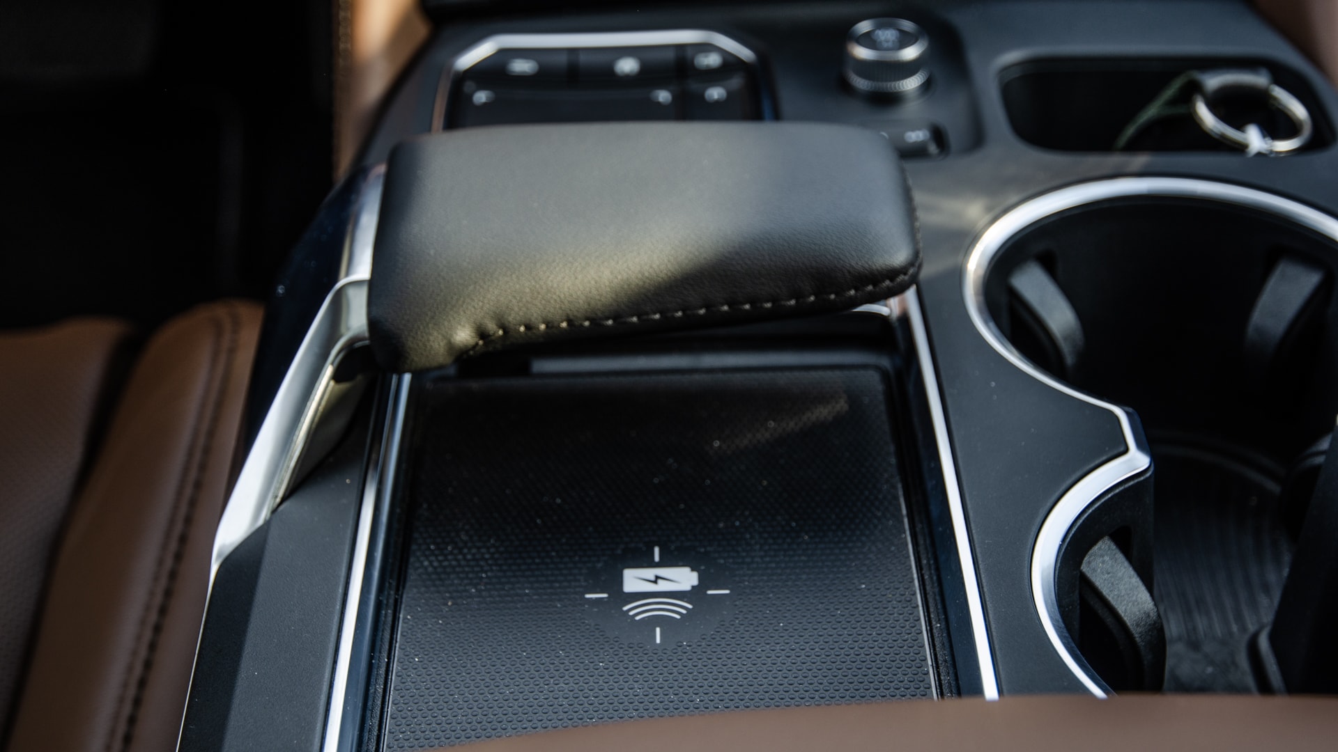 Step inside, though, and you’re met with a very premium, very luxurious cabin, especially for the price. Not only is the cabin extremely spacious but it features a tech-forward design that also prioritizes practicality. There are cubby spaces everywhere, there’s a great wireless charging tray for your phone, a little pop-out hub for some charging ports, and a massive infotainment screen. It makes a good first impression, no doubt.