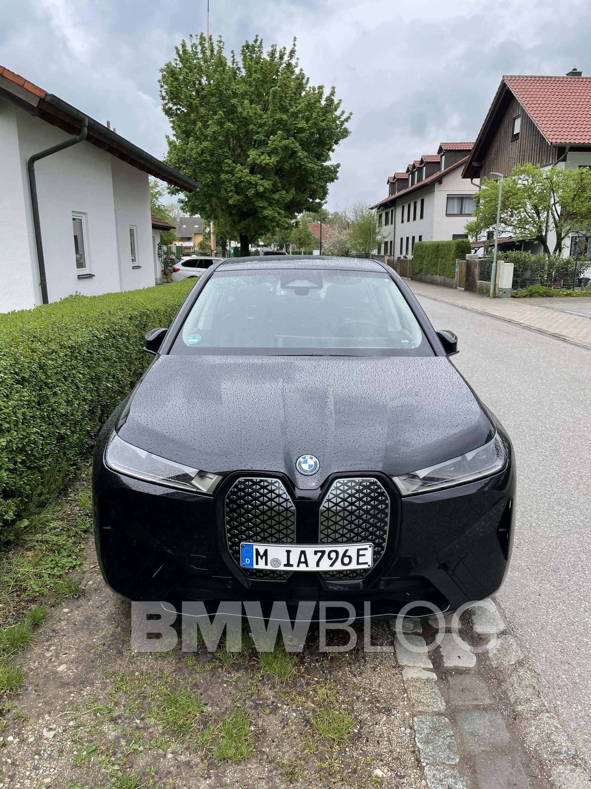 In some new photos given to us, we get to see the upcoming BMW iX out in public, wearing black. When we usually see the iX, it’s always in a more modern white and black color scheme, so it’s good to see it in all black, which gives it a sportier look. The aero wheels on this car are also black and, while a bit dull looking, do look like they should be quite aerodynamic.