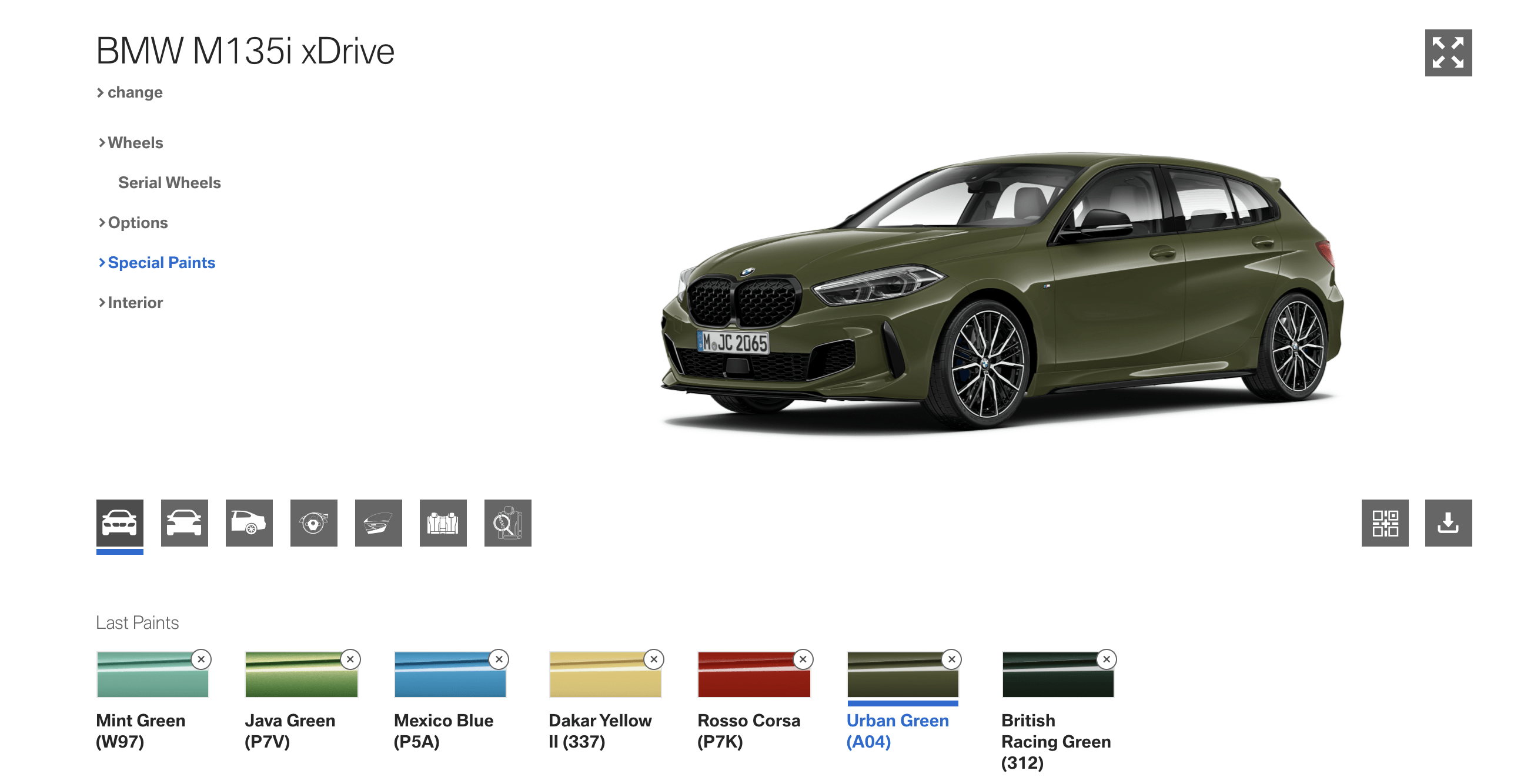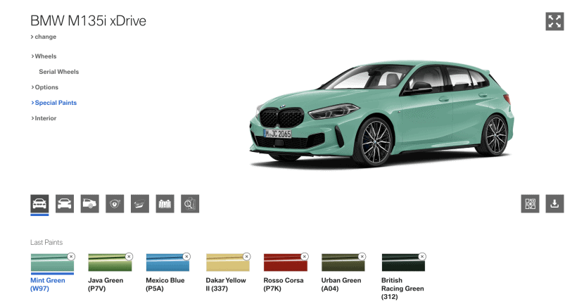 The BMW Individual configurator for the 1 Series is already live and at a first glance, the paint options are quite exciting. Not only you can go for classic colors, such as Dakar Yellow, Imola Red, Rosso Corsa, Le Mans Blue, Daytona Violet or Fire Orange, but also for newer paintworks: Urban Green, Miami Blue, Mexico Blue, Verde Mantis, Ametrin, Zanzibar, Macao Blue and much more.