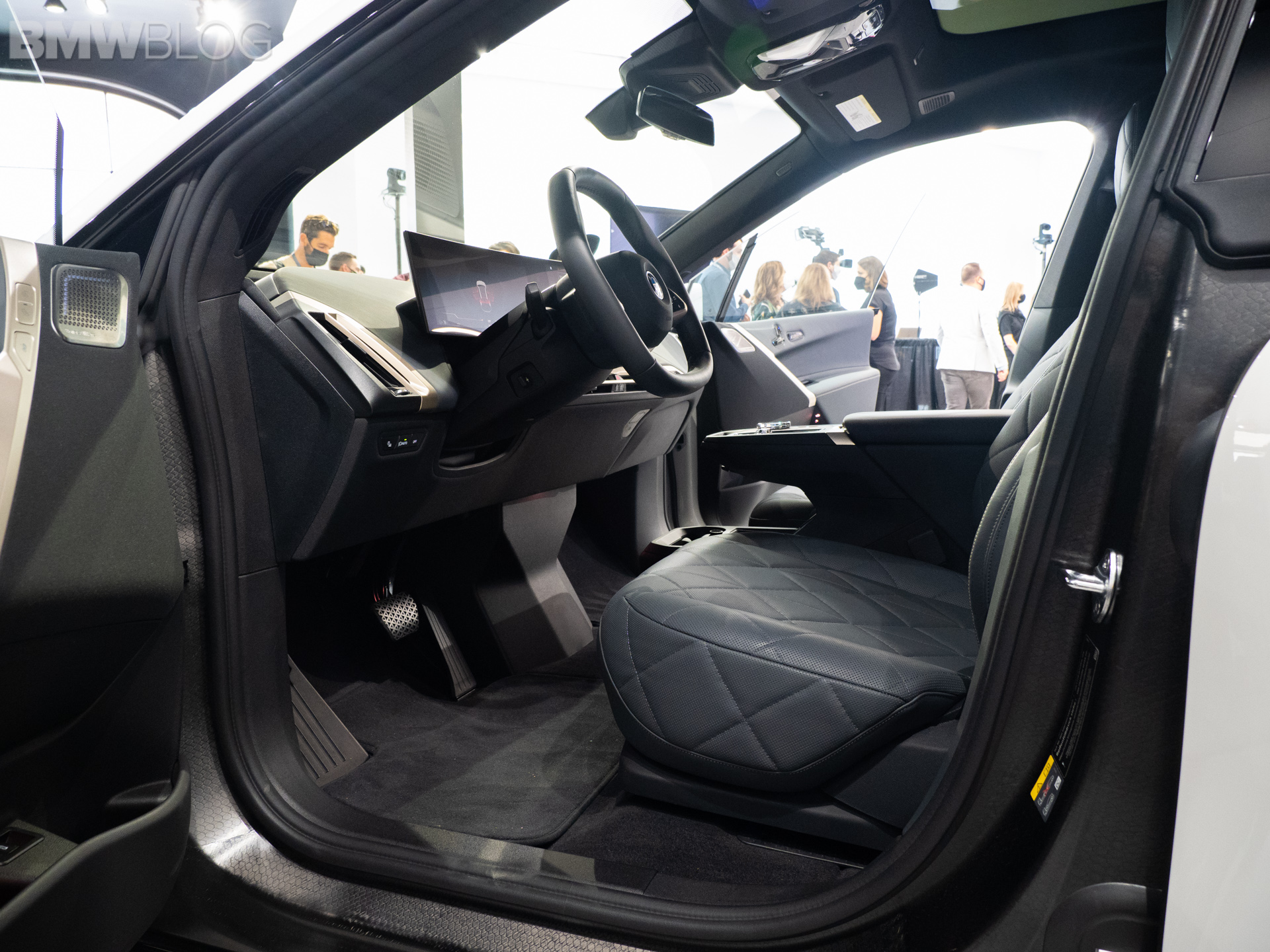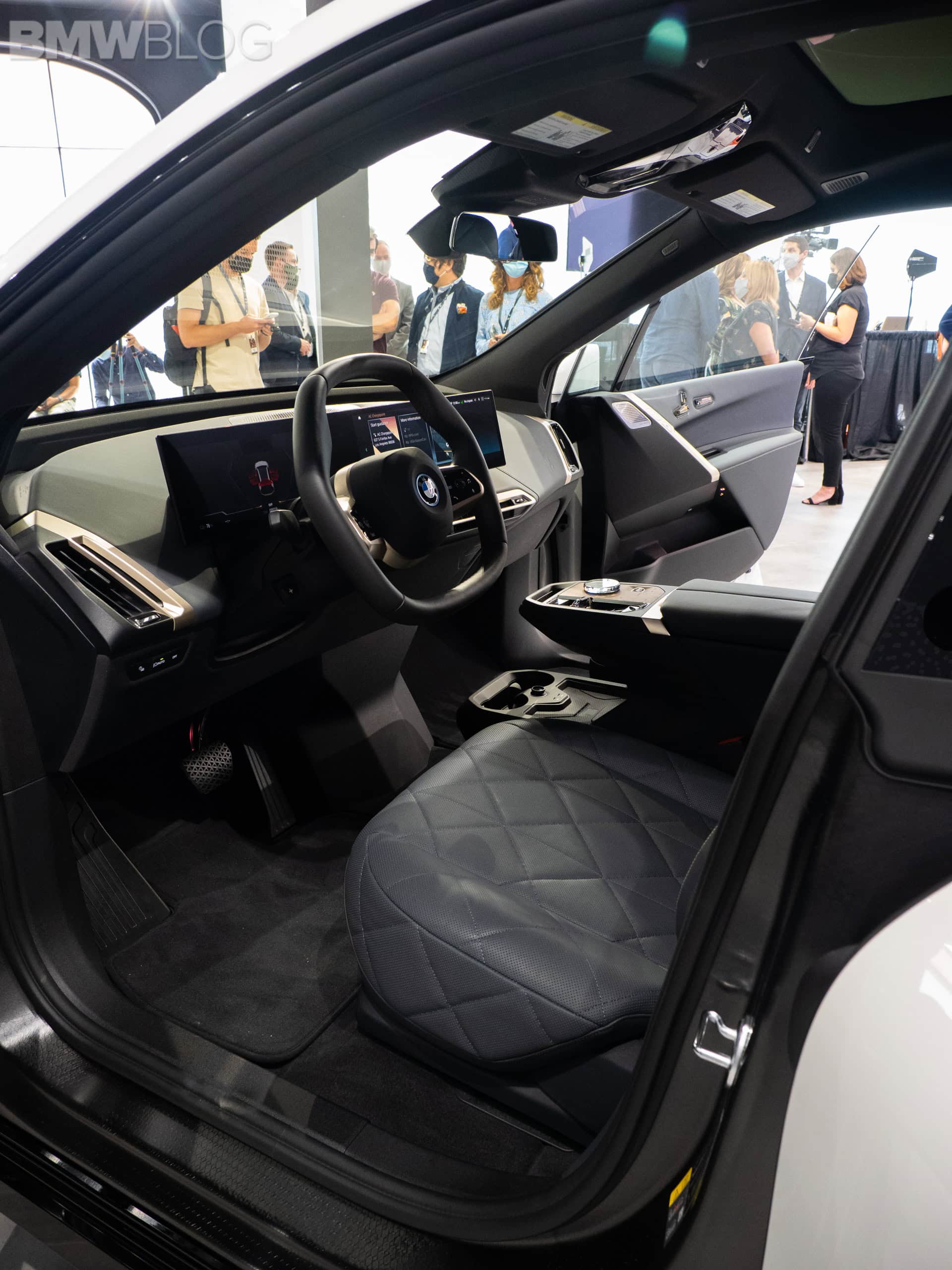 We only had a chance to see the BMW iX xDrive50 in person, as BMW left the xDrive40 behind. Which is a bit disappointing because we wanted to see if the quality of the cabin is toned down in the less expensive model. Though, we really don’t expect it and are quite big fans of the iX interior.