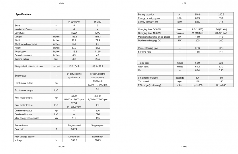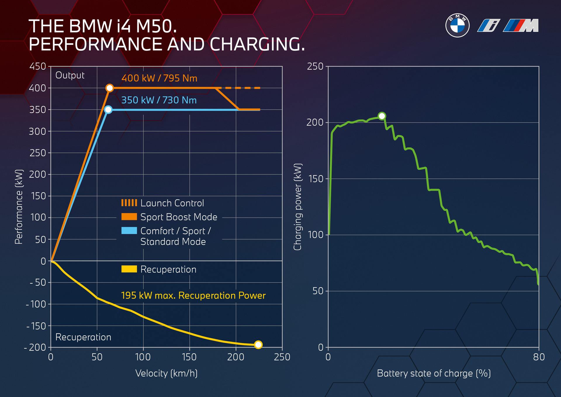 The i4 M50 also gets a SPORT Boost function increasing the system’s combined drive power by 67 hp to its maximum of 536 hp for over ten seconds. At the same time, combined torque is upped by 48 lb-ft to 586 lb-ft. The extra burst of acceleration is accompanied by an M-specific soundtrack.