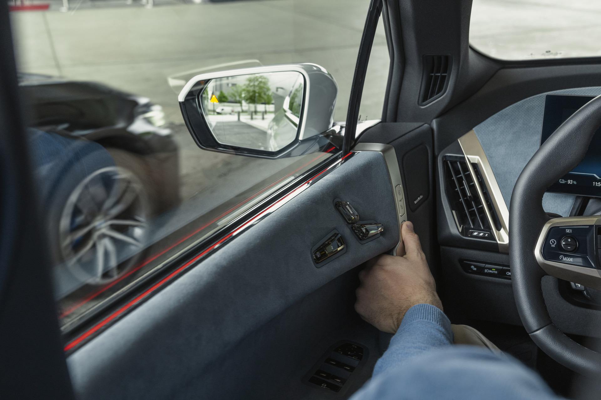 The steering wheel is an odd shape but it looks different from most BMW wheels and seems futuristic. All of the seat controls were moved from the side of the seat to the door panels, which is a bit Mercedes-Benz-esque, so I’m surprised BMW did it. Though, it does look a bit more premium, especially since all of the controls are Swarovski crystal in the xDrive50 and M60 models, along with the iDrive controller and drive selector. In iX xDrive40 models, the seat controls are metallic.