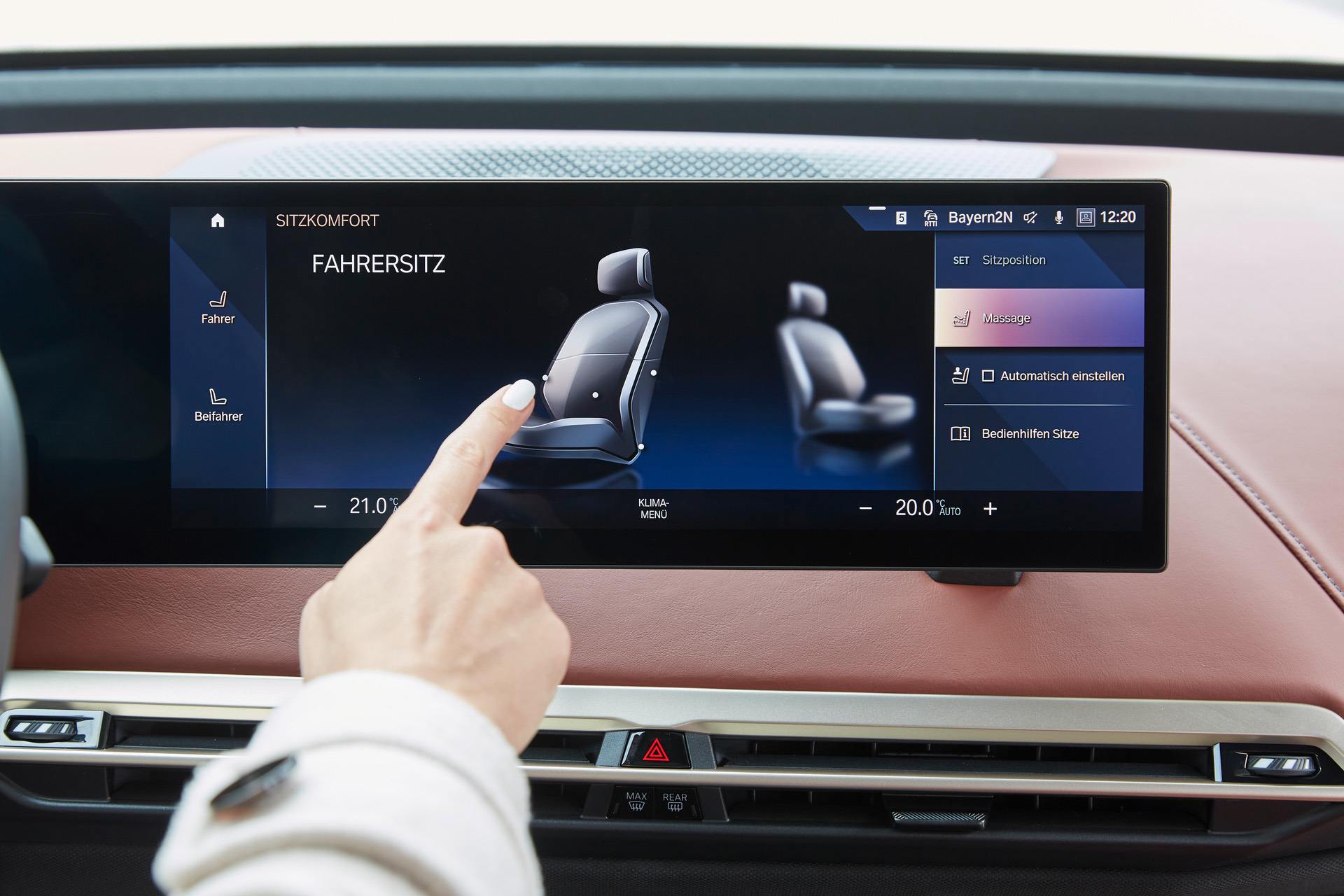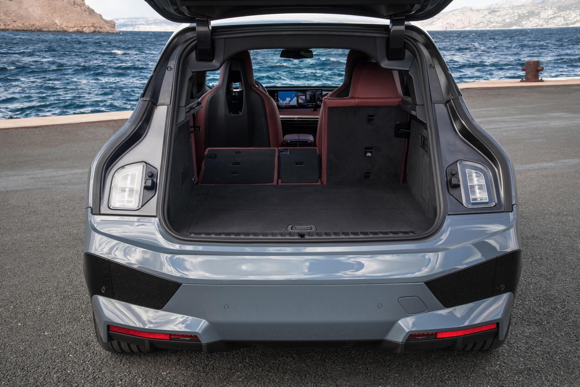 When you walk up to the car, it now performs “Great Entrance Moments”. Using UWB (Ultra Wide Band) radio technology, the BMW iX knows when the driver is approaching it and knows exactly where the driver is, within a few centimeters. Once the driver gets within three meters, the iX performs a bit of a welcome but doing an exterior and interior light dance, unlocking the car, creating a light carpet next to the door, and prepping the interior. While all of that is happening, the iDrive system is getting ready and all of the car’s interior seating surfaces are heating up, if it’s cold outside.