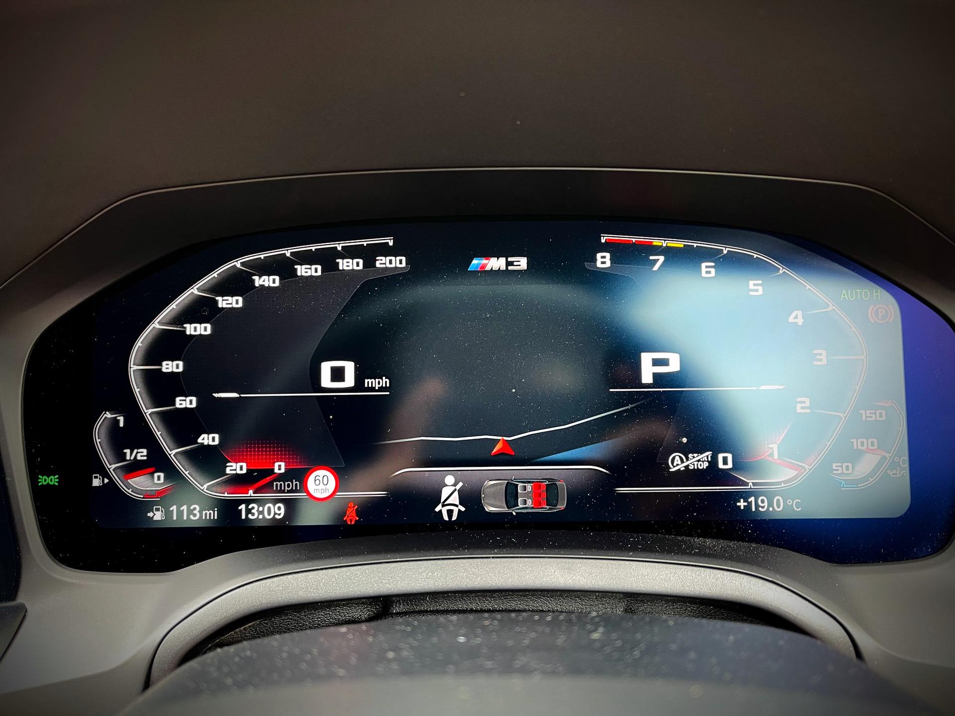 Hit the engine start button on the central console and the M3 instantly draws attention from passers by from the exhaust noise. Pull out onto the open road and you instantly realize the sheer size of the G80. At 4794mm long and 2068mm wide, it’s 12cm longer and 3cm wider than the previous generation M3. I found myself becoming quite aware of the value of those carbon fibre mirrors when driving! Hit the accelerator and the front end of the car feels like it’s going to take off.