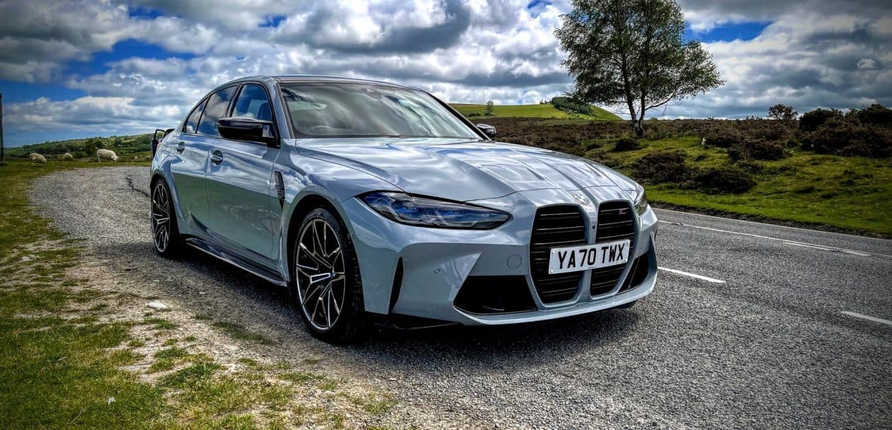So what does the G80 M3 Competition have to show as potentially the last combustion engine M3 to come out of BMW? Let me address the infamous part of the G80 first. Those front grilles. Large enough to fry to pieces of steak on, the grilles make the front of the car impossible to mistake for another model. In fact, the number plate almost resembles a face mask worn over them. But that is exactly why I think BMW have put them on the front of the car, to draw attention. The grilles are complimented by two aggressive bulges in the bonnet to make them stand out even more. The press car I was given had both the visibility pack, with the laser lights, plus the carbon fibre pack, giving the front of the car carbon intakes, which went well with the Brooklyn Grey paint.