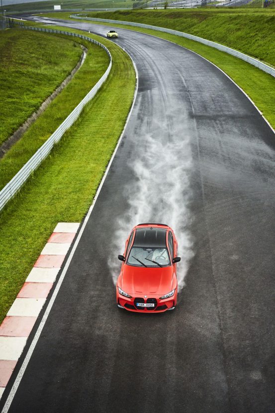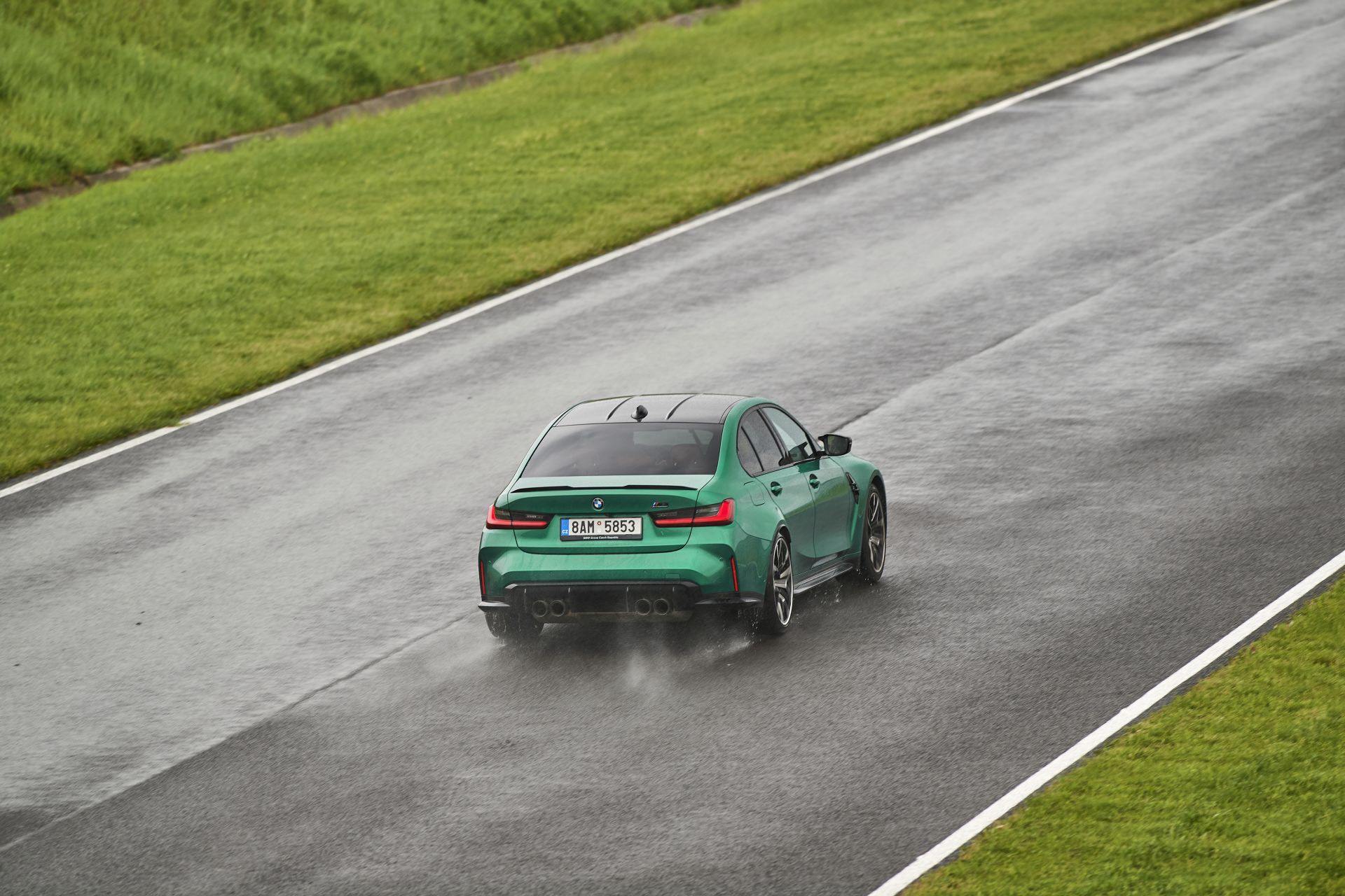 Then, the fun began. Even though the asphalt was soaking wet, some highlights did pop up. First: the front axle grip. Despite having to carry over 1.8 tons (myself included), the front axle of the M3 Competition inspired a lot of confidence with no sign of slippage or understeer whatsoever.