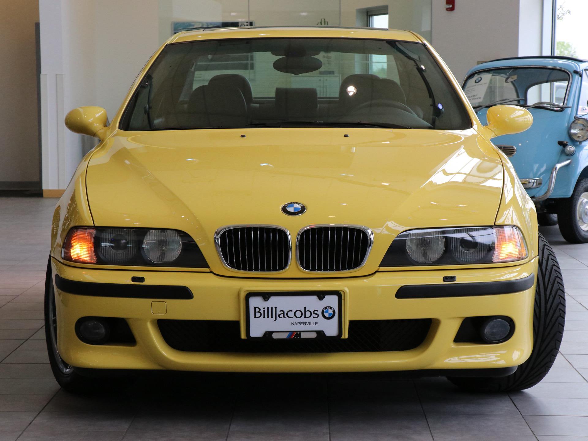 Today, we came across an exceptional E39 M5 at Bill Jacobs BMW in Illinois. This pristine M5 has an incredibly low amount of miles on the odometer: 635 miles. It is also painted in one of the most iconic BMW M colors: Dakar Yellow. According to the BMW dealer, the car was purchased in St. Louis before heading to California with its owner. Most of the miles are on the coastal California highways and it comes with all of the original paperwork. It’s also rumored to be one of the five Dakar Yellow E39 M5s imported in the United States.