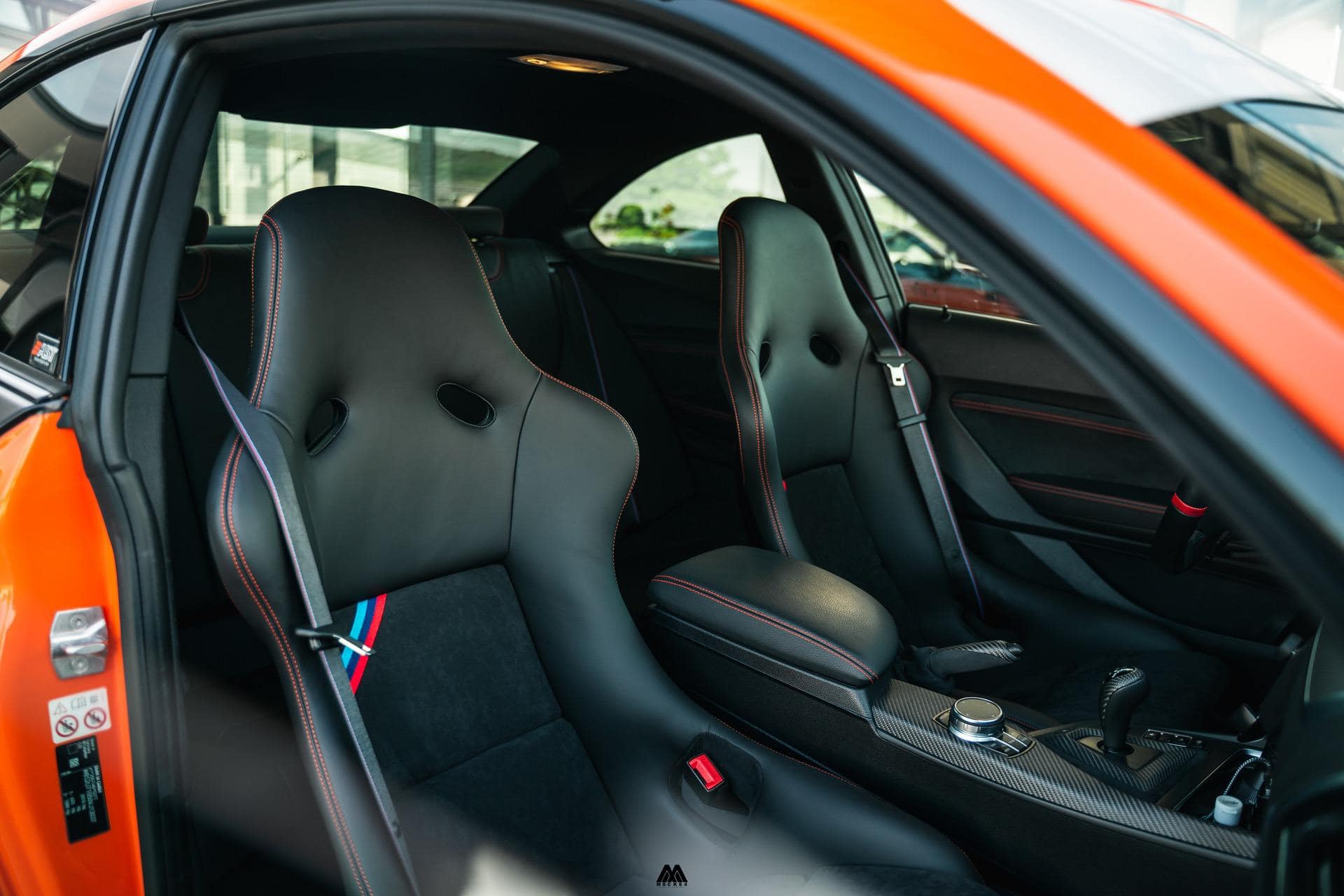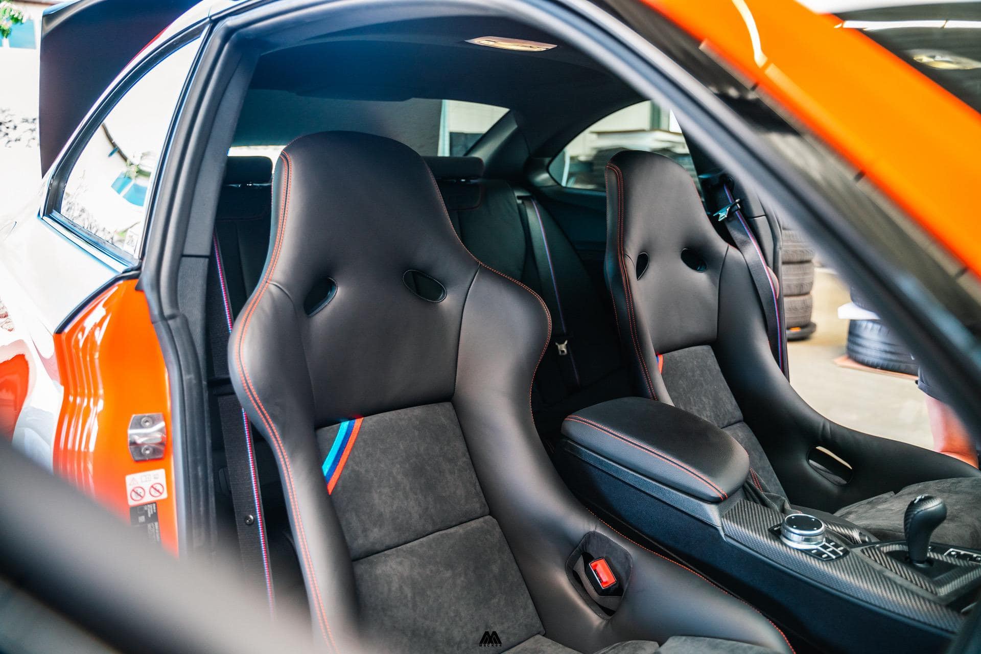 In my case, it was key that the RECARO Pole Position seats came in a specification that fitted the standard interior of the M2, while also resembling the stock M4 GTS buckets. You might ask yourself then why not buy the M4 GTS via a dealer and don’t make life so difficult for yourself. Let me come back to this in a second. First of all, the Pole Positions I ordered were the stock seats with velvet fabric. Getting them to an upholsterer allowed me to choose my seat stitching color matching it to the standard off factory orange in the cabin.
