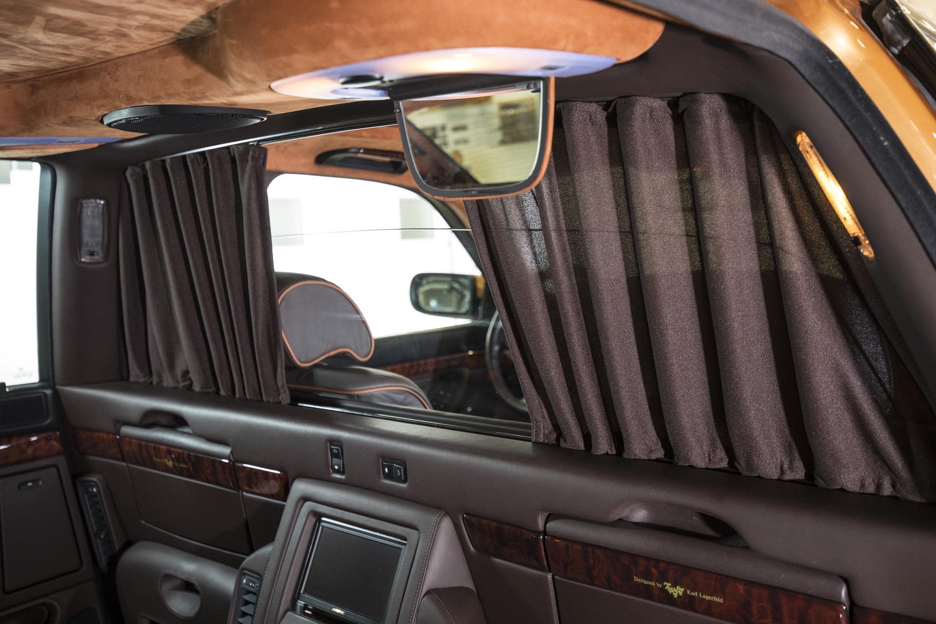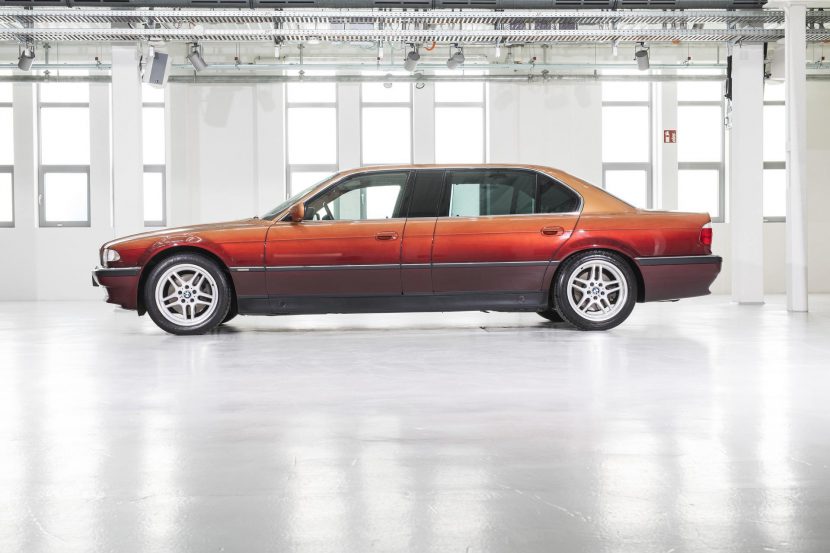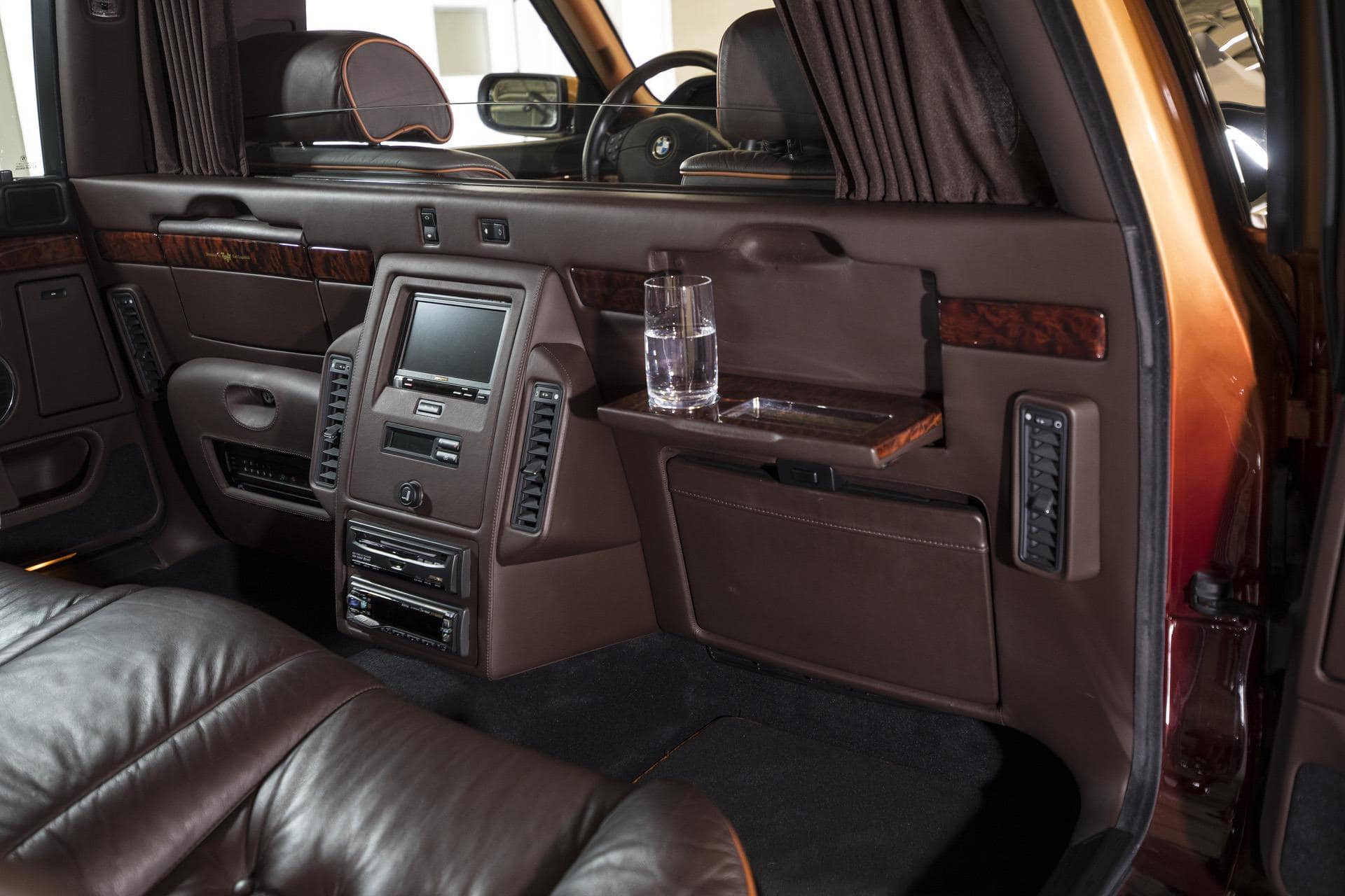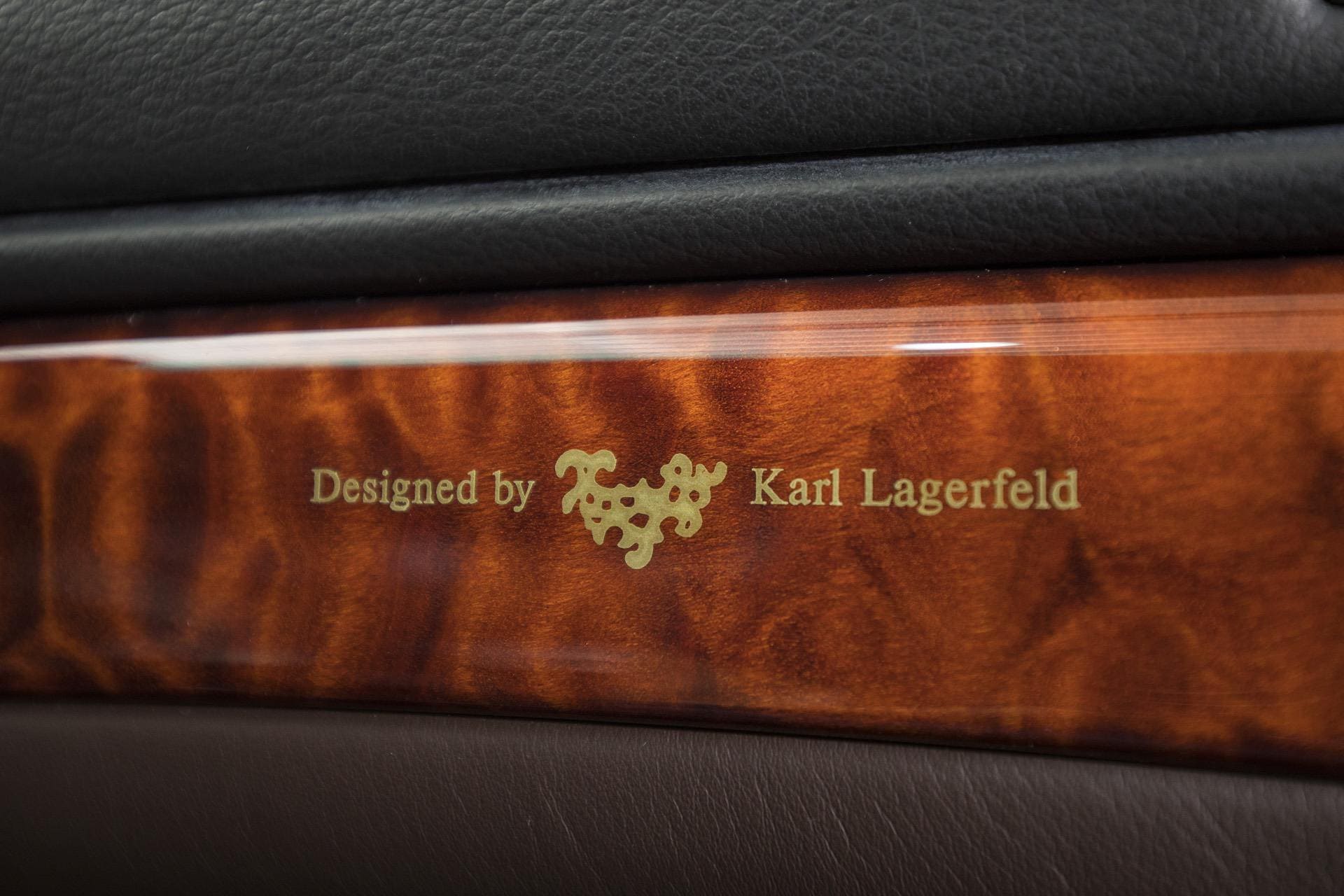 The E38 L7, made in 2000, was a small series of 899 pieces, and featured a Chestnut Brown Metallic over Gold Orange Metallic exterior paint. The interior of Lagerfeld’s BMW L7 is decorated with a Chocolate Brown leather. Its uniqueness underlines the stitching. Lagerfeld chose a contrasting orange thread. The infotainment and communication system in the rear, which was state-of-the-art at the time, was pure luxury and, in addition to an on-board telephone, also included a fax machine, VHS player, refrigerator or, as in the case of the Lagerfeld L7, a small safe. A pane of glass and heavy curtains between the first and second row of seats provided more privacy in the rear. The Lagerfeld BMW L7 also had a special designation – Designed by Karl Lagerfeld – decorated in gold on a wooden door.