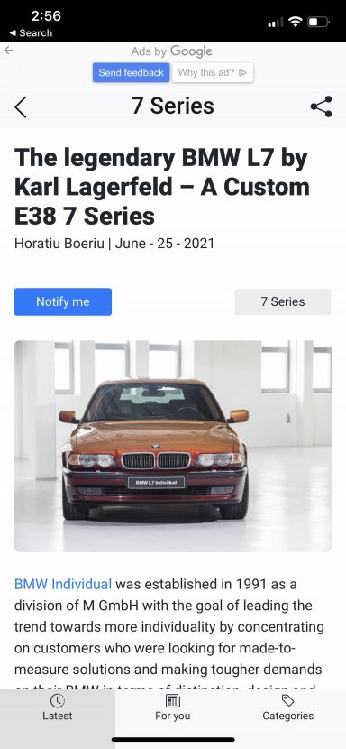 - A custom notification system which gives you the opportunity to tailor your reading experience. You can now select which notifications to receive based on the topic you’re interested in. If you press the “Notify Me” button in an article, you will receive notifications only related to that topic. Like a BMW M4, for example.