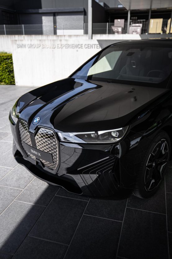Most of the BMW iX marketing materials are showing the high-end electric crossover in the Aventurine Red launch color or Alpine White. But today, we get to take a look at the BMW iX in a black color, courtesy of the BMW Group Brand Experience Center in Switzerland. In this new photoshoot, the BMW iX stands out with its imposing and elegant stance, and the black color theme suits the shapes of the car quite well.