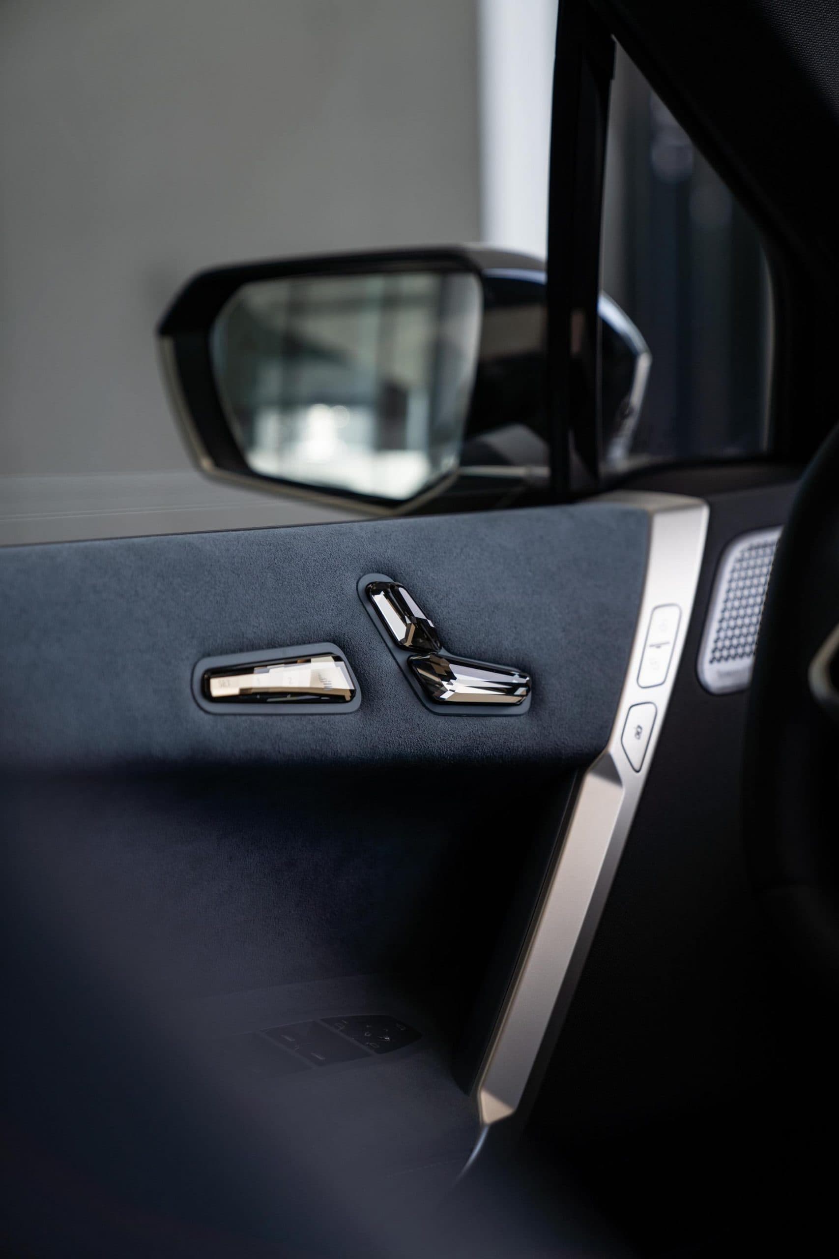Another interesting upgrade on this iX is the BMW Individual Exterior Line titanium bronze which provides an elegant contrast to the black paintwork. The pattern of the BMW kidney grille, which is packed with sensors, and the xDrive50 model logo on the rear are made of titanium bronze as well.
