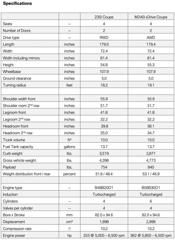 The market launch is set for November 2021. The MSRP of 2022 BMW 230i Coupe starts at $36,350 and $48,550 for 2022 BMW M240i xDrive Coupe, plus $995 Destination.