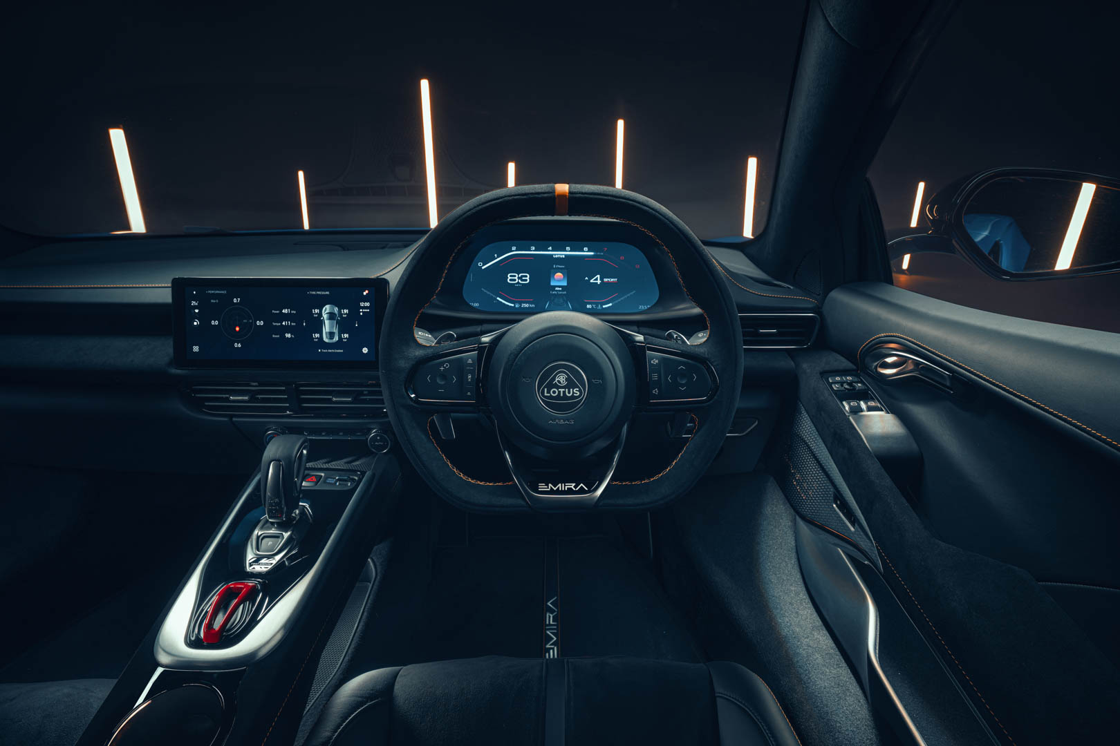 And they should be. The Emira is a mid-engine, two-door, lightweight sports car that weighs just over 3,000 lbs (just under 1,500 kg) and is offered with a choice of two different engines, rear-wheel drive, and a manual gearbox. The base engine, a familiar supercharged 3.5 liter Toyota-sourced V6 with 400 horsepower, will come with either a six-speed manual or six-speed automatic.