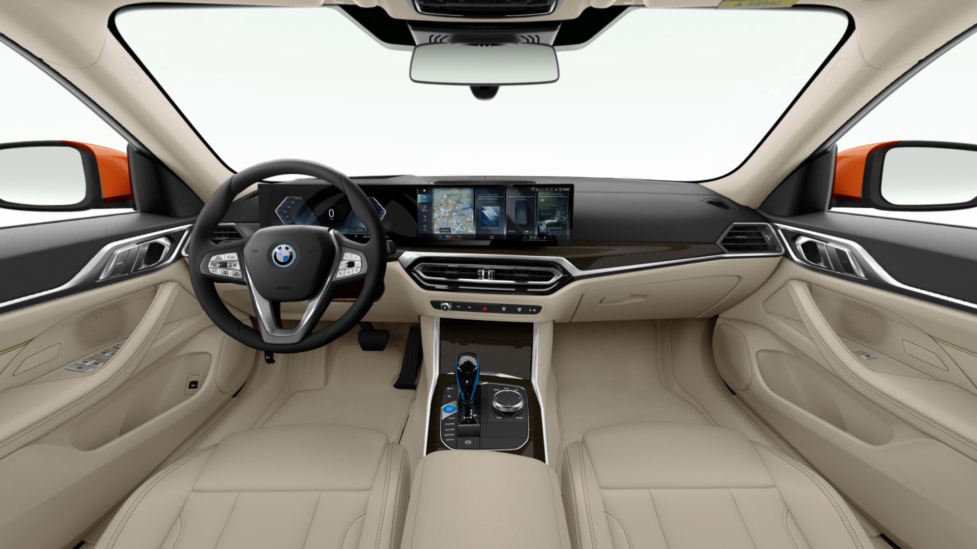 BMW i4 eDrive40: Series trim, Sunset Orange metallic, Sensatec Canberra Beige interior