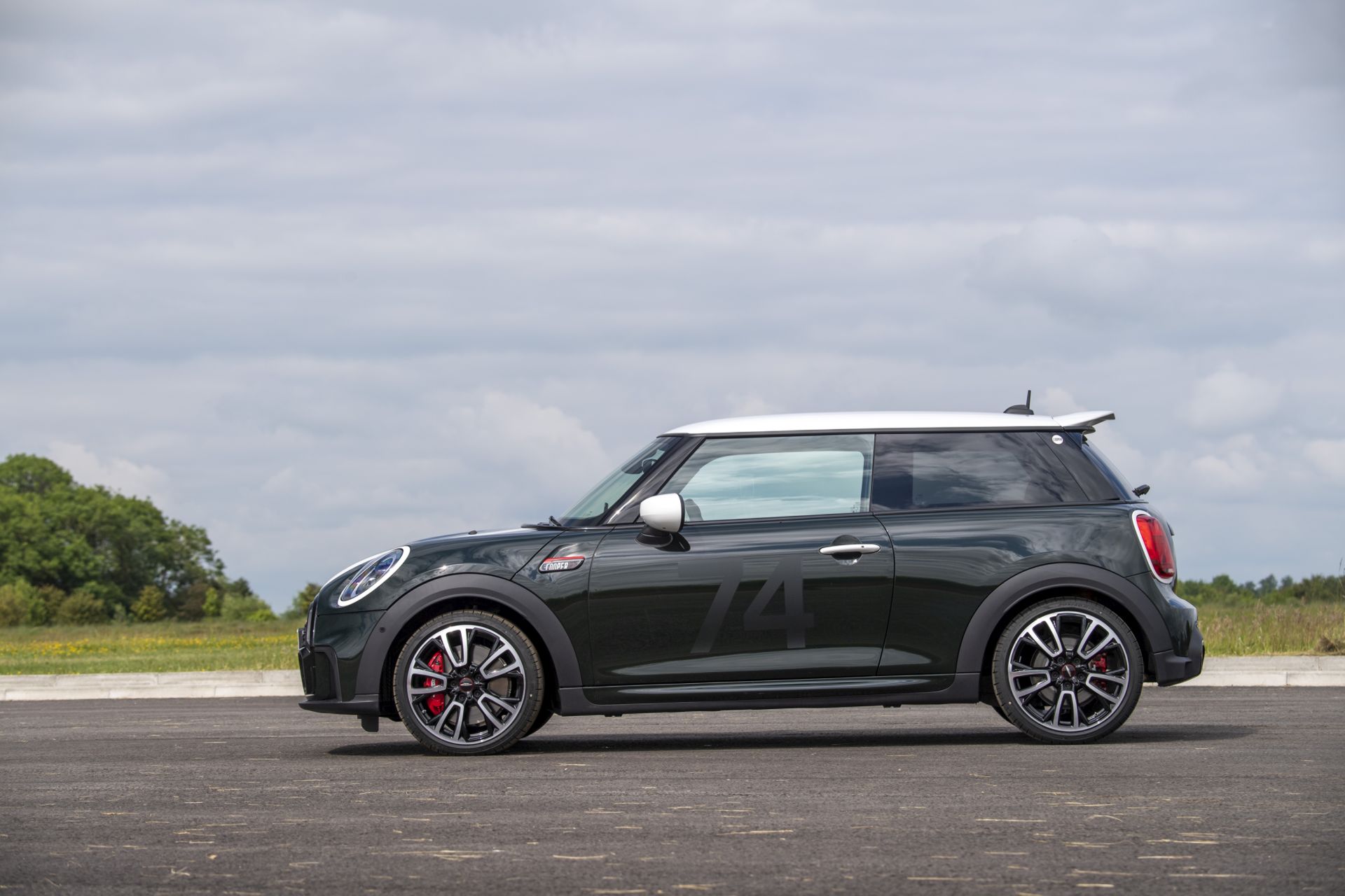 These cars will come with exclusive design and equipment features. They are offered in British Racing Green metallic. Alternatively, Midnight Black metallic variant is available, and for MINI John Cooper Works the Rebel Green body color is also offered. All paint finishes are combined with a roof, exterior mirror caps, door handles and surrounds for the headlights and rear lights in white. Other exterior trim elements are offered in Piano Black high gloss.
