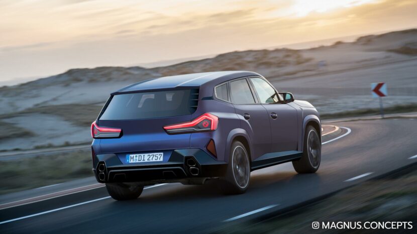 Therefore, it comes as no surprise that rendering artists are trying to figure out the design cues hidden behind the camo. These new renderings, courtesy of @magnus.concepts, give us a front and rear look of the XM, but of course, as always, it’s not going to be a 1:1 design with the final model. One thing that stands out immediately is the layout of the famous double twin exhaust pipes. Like all M cars, the BMW XM gets quad exhausts but it’s how they’re placed in the rear bumper that’s unique.