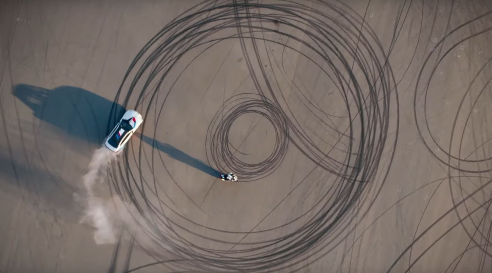 So, what happened? Well, with 510 HP and over 200 respectively on the motorcycle, doing donuts is rather easy if you know how to handle a car/bike. As you can see in the video below, we ended up with a brilliant double donut, done just for fun. Crazy what kind of things get our blood flowing, huh?