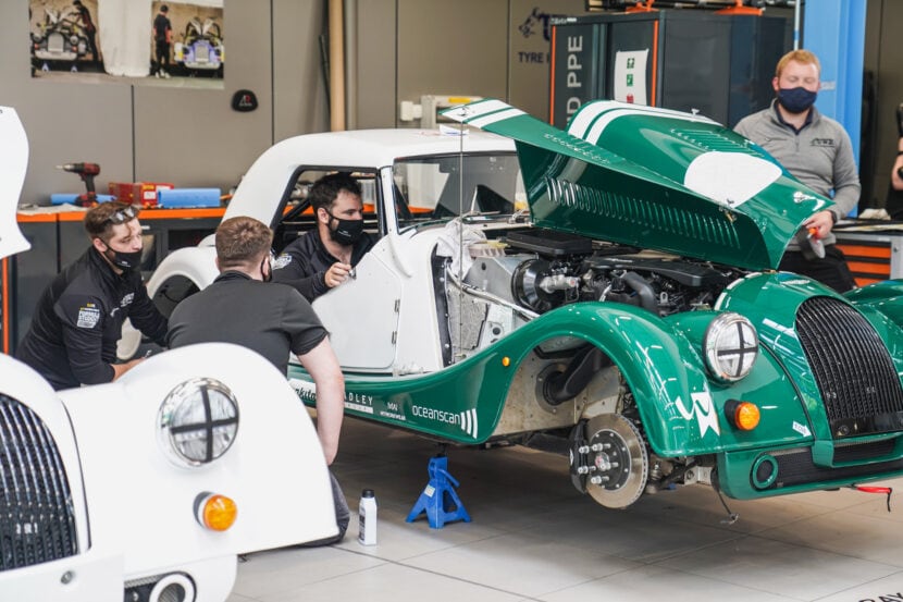 The Morgan Plus Four racecar is just a modified Plus Four road car, which means it has the same flexible aluminum-intensive architecture (internally known as CX). The platform can be modified to use typical internal combustion, a hybrid powertrain, or even full-on electrification. It might look old but it’s as fresh as can be underneath.