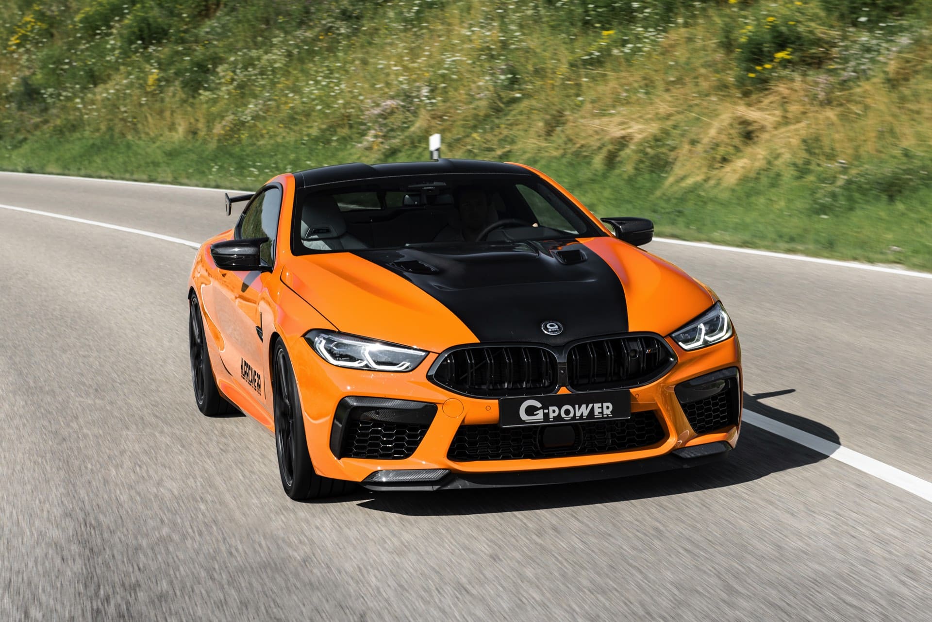 The packaging wouldn’t be complete without a set of custom wheels. G-Power offers two types of 21-inch forged wheels shod in mixed performance tires – 285/30ZR21 at the front and 295/30ZR21 at the rear. The exterior is also painted in the typical orange wrap from G-Power, while inside there is plenty of Alcantara and carbon fiber parts. The carbon hood with additional openings for ventilation serves both optics and cooling. The carbon rear wing is recommended for additional downforce.