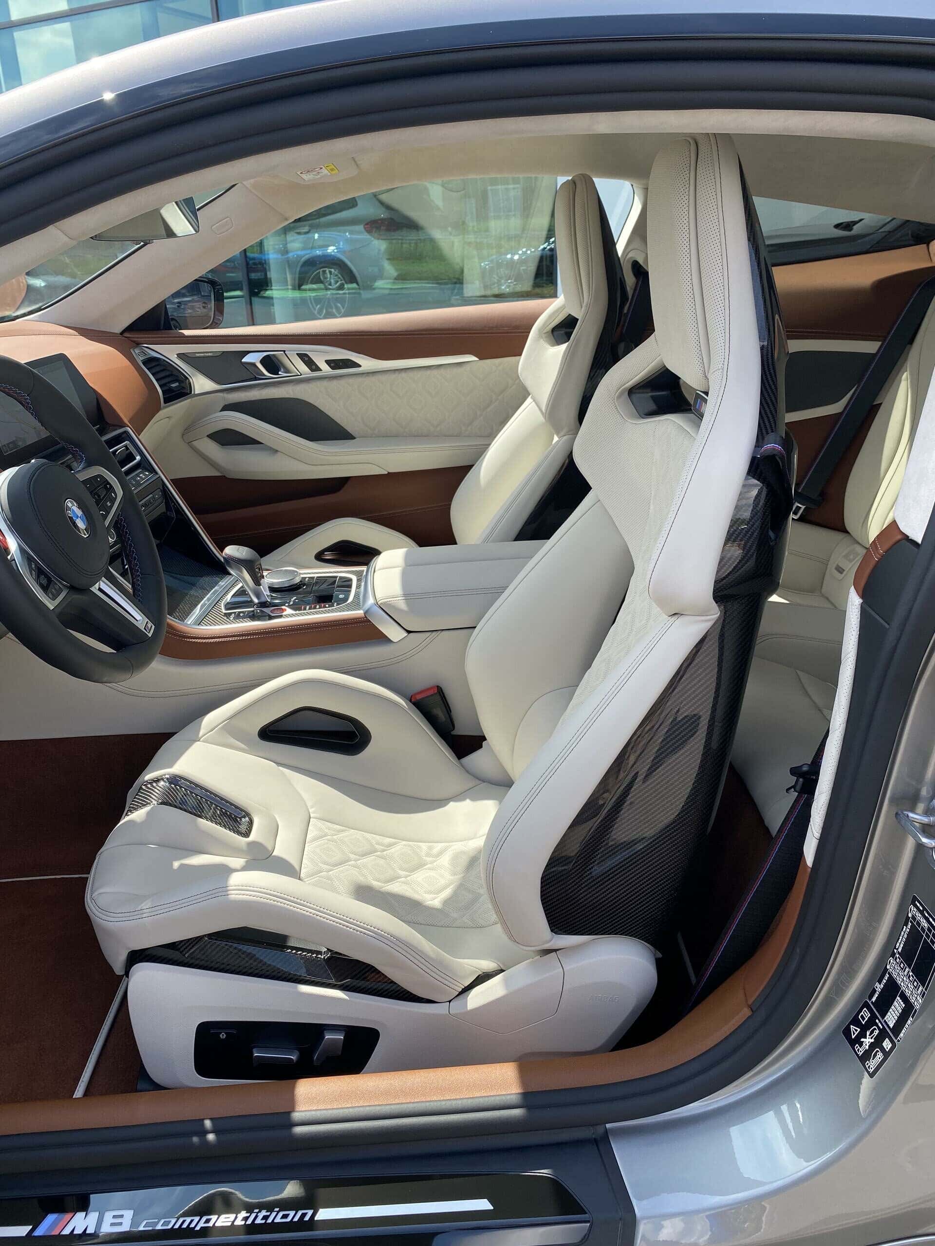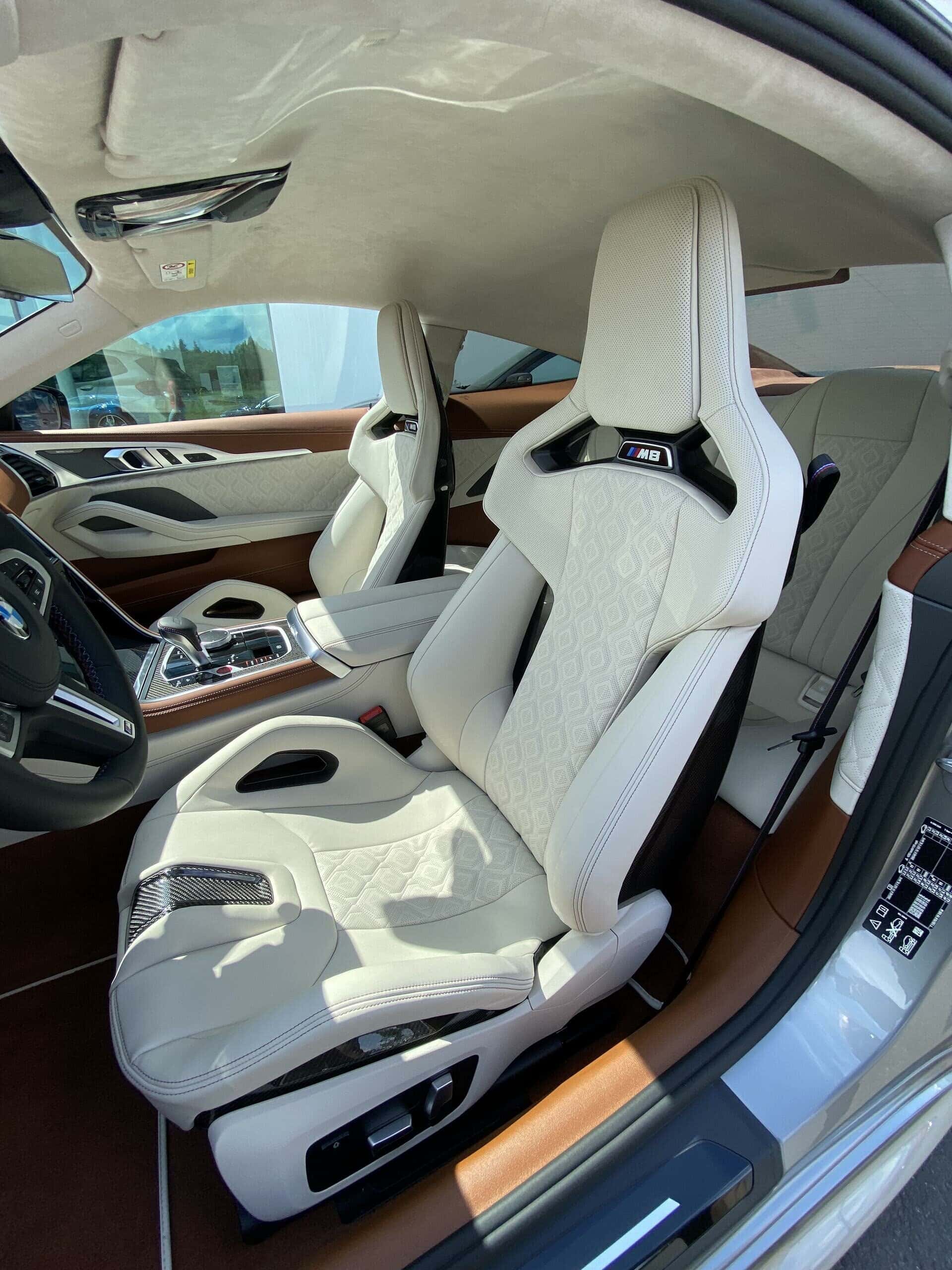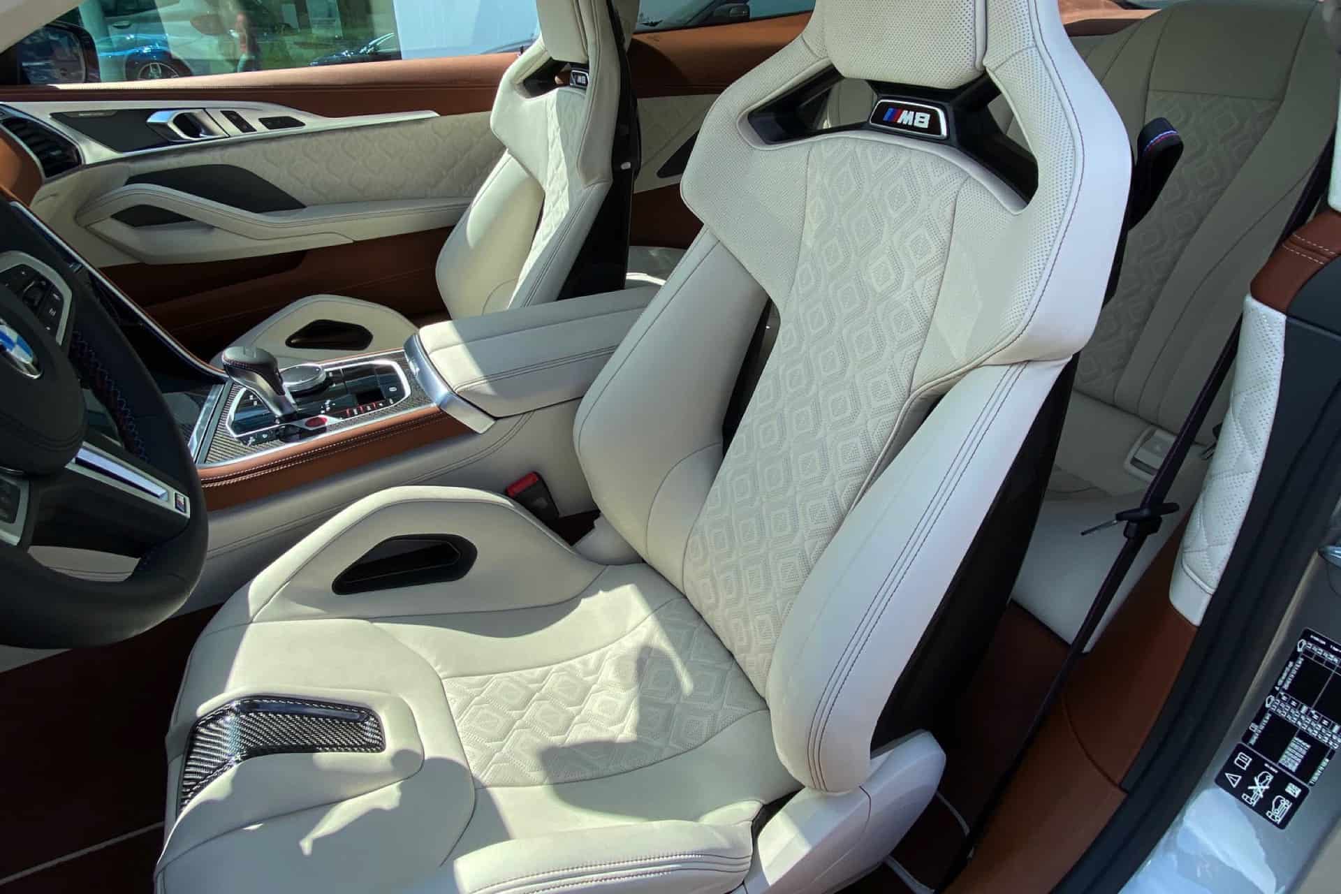 A BMW salesman, and a reader of our sister site BimmerToday, recently sent us some photos of the M Carbon Bucket Seats in a BMW M8 Coupe. Until now, we weren’t aware that those seats were available in anything other than the M3, M4, and M5 CS. However, the BMW M8 in these photos is also fitted with a BMW Individual interior. Rather than the black and red color scheme of the M5 CS, or the several different sport colors offered in the M3 and M4, this M8 Coupe wraps its carbon buckets in Ivory White Individual Merino leather.