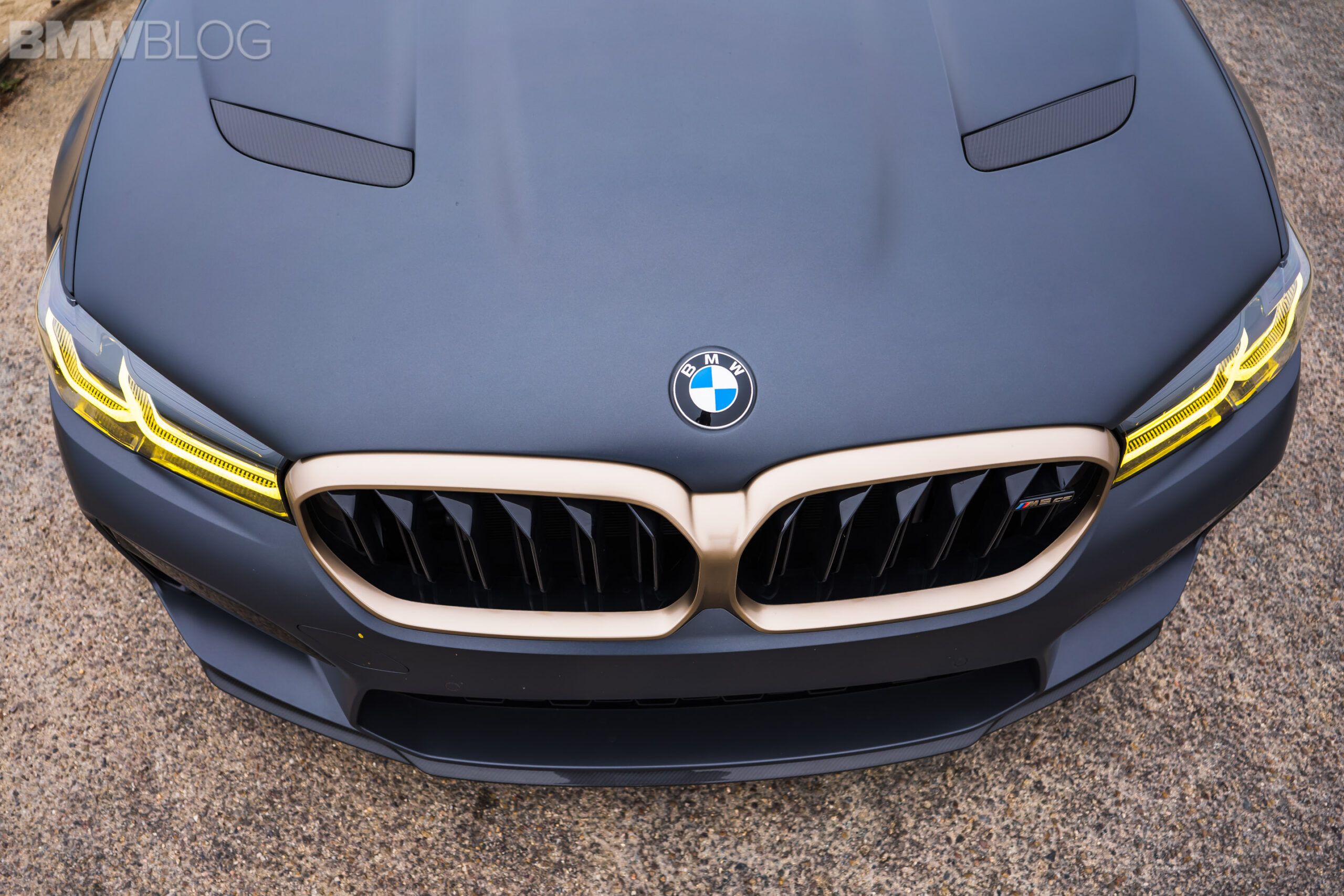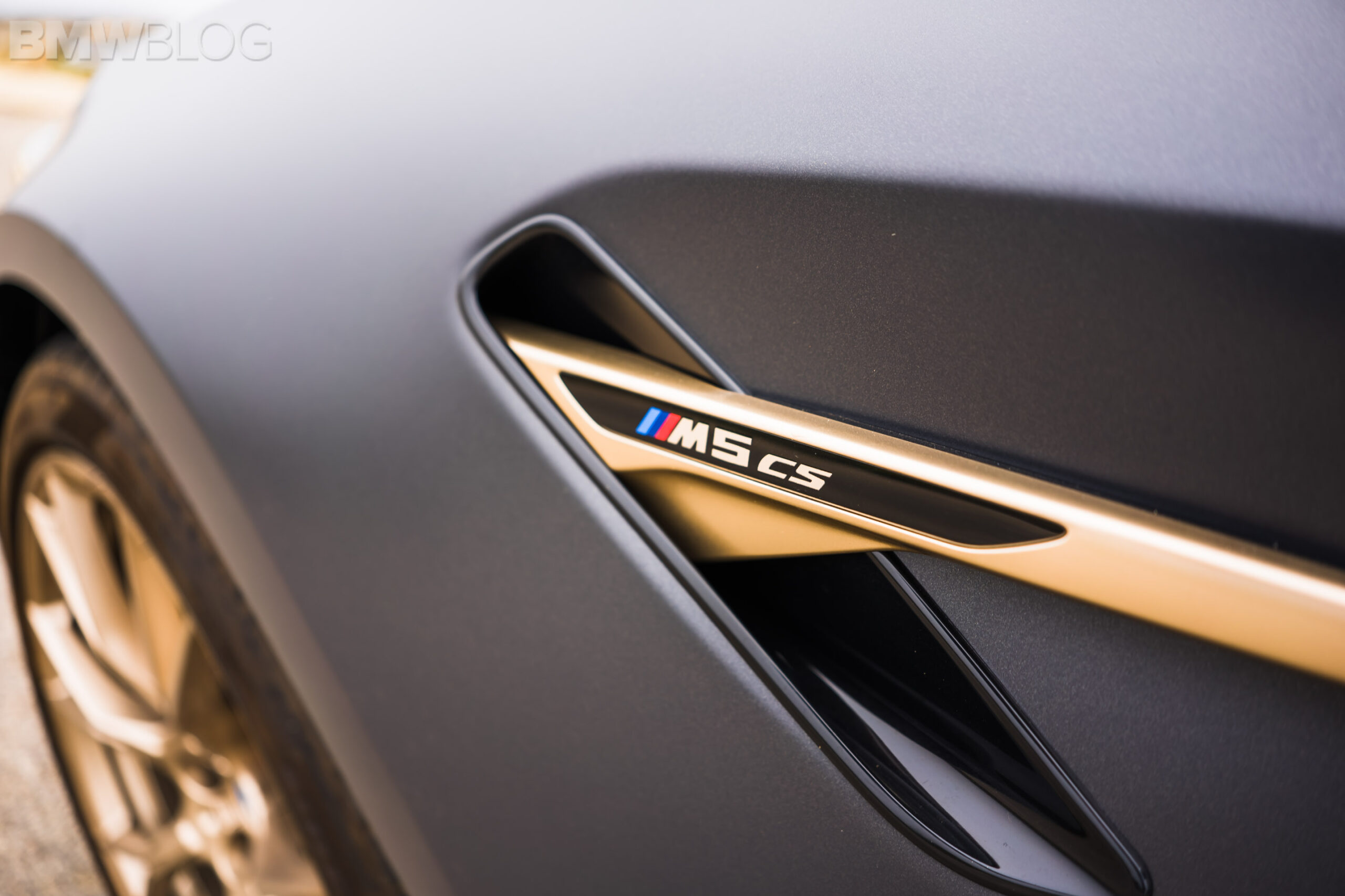 Furthermore, for CS-duty, the M5 has been beefed up and it looks much meaner than the Competition model. That new carbon fiber hood is as aggressive as it is light, with a large hood bulge, a couple of vents and more creases. It also gets bronze accents on the kidney grilles to match the wheels, carbon fiber aero, a carbon fiber rear lip spoiler and a new and beautifully sculpted diffuser. It even gets killer yellow headlight accents.