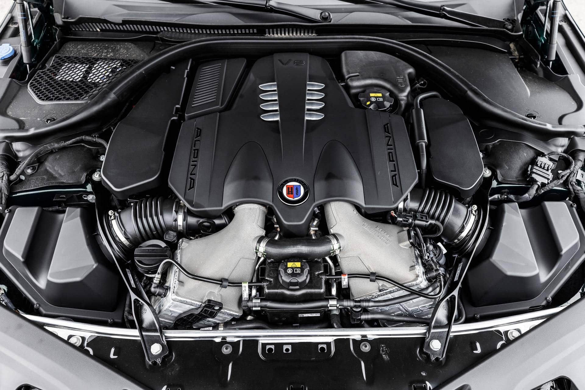 Obviously, the ALPINA B8 Gran Coupe starts life as a BMW M850i Gran Coupe but after the team at ALPINA is done with it, the B8 is a superior machine. For starters, the BMW 4.4 liter twin-turbocharged V8 is taken out, torn down, and fitted with a ton of new kit. The usual ALPINA engine treatment involves replacing the pistons, intercooler, intake manifold, exhaust manifold, fitting larger twin-scroll turbochargers, and giving it its own bespoke tune.