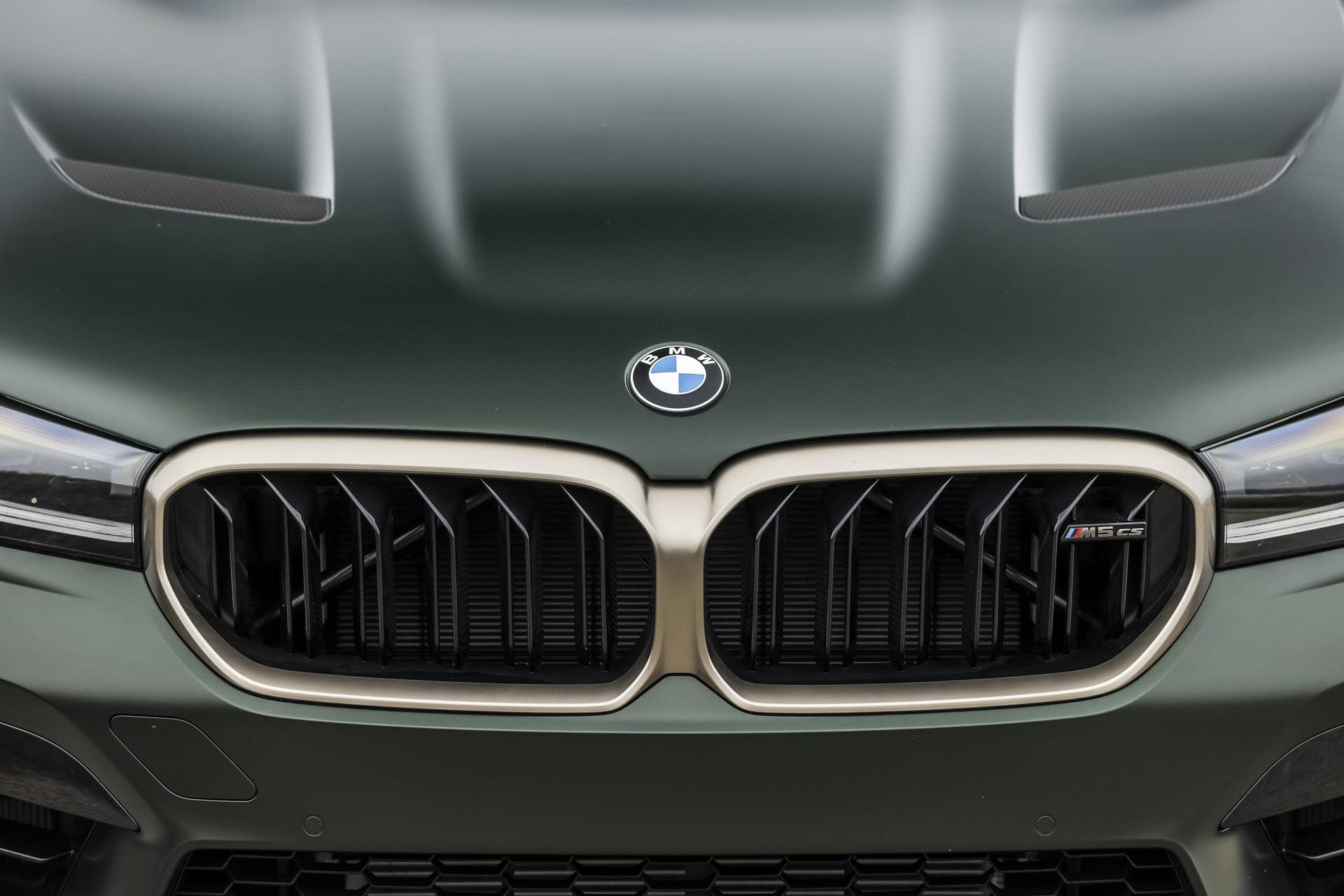 The BMW M5 CS comes in three colors. The standard color is Brands Hatch grey metallic. The two optional BMW Individual colors are Frozen Brands Hatch grey metallic and Frozen Deep Green metallic. It’s the latter one that’s arguably the best of the bunch. The interior comes in but one color scheme — black with red accents. If you want gold brake calipers instead of red ones, you can have those at no extra cost. Yet, we’re glad that BMW picked the Frozen Deep Green Metallic as the launch color.
