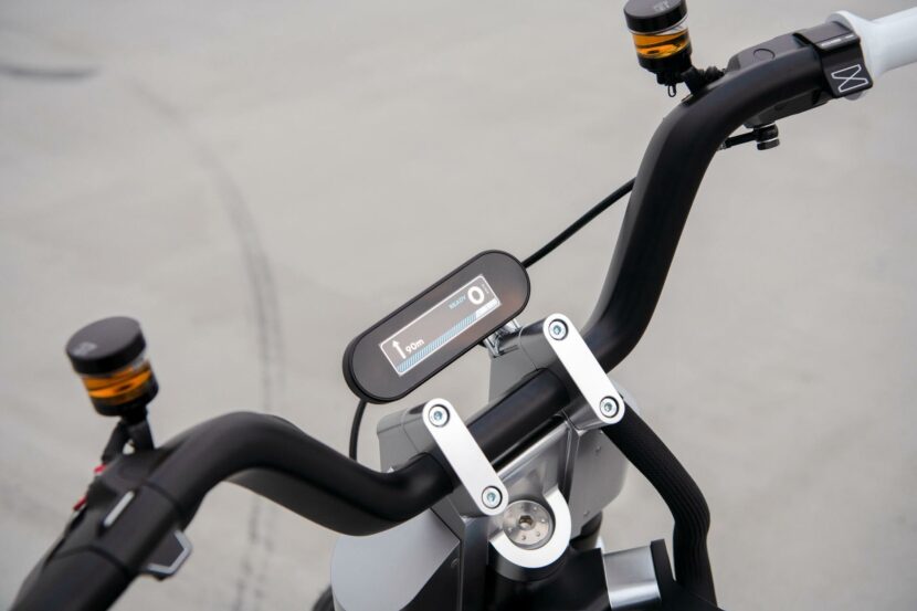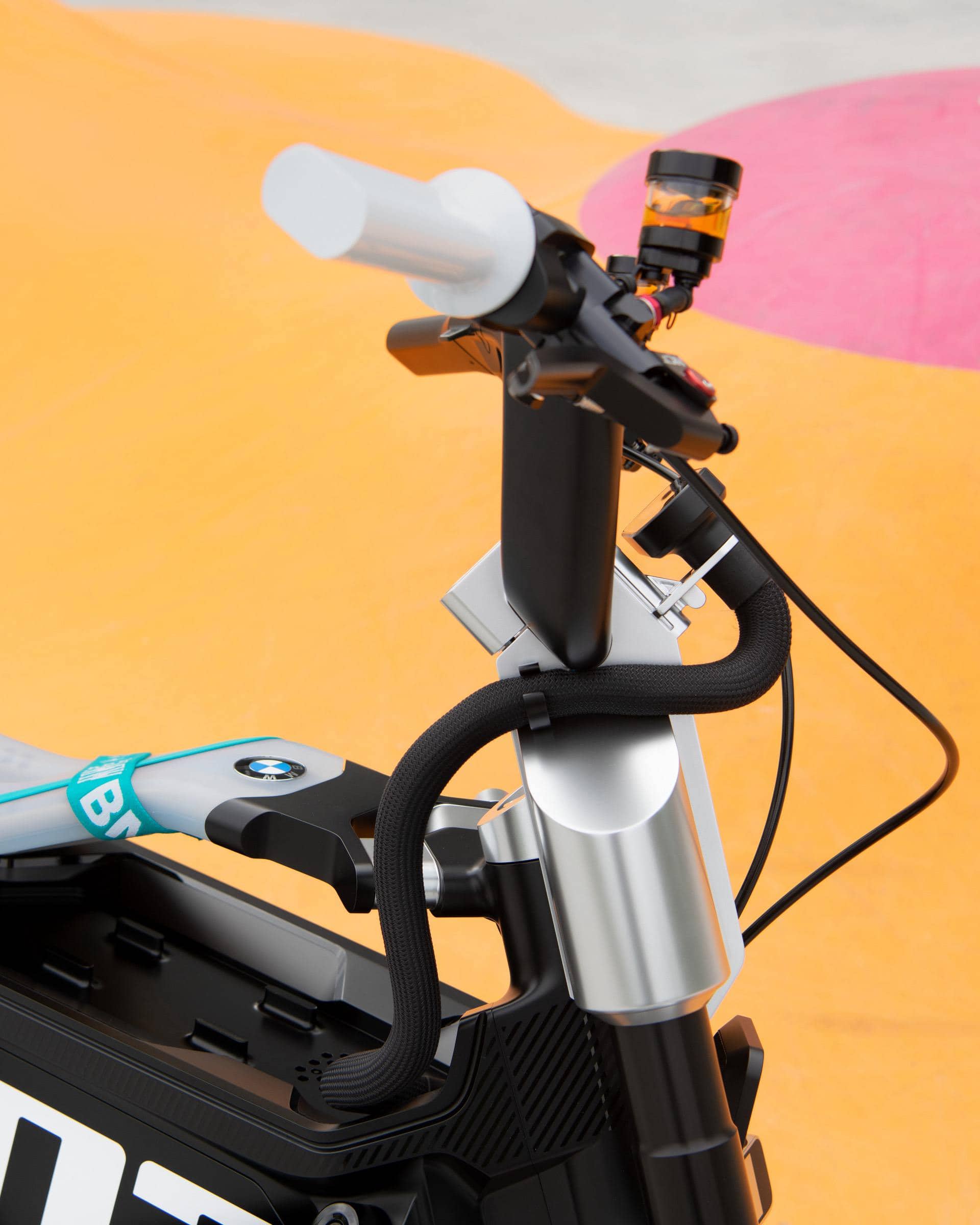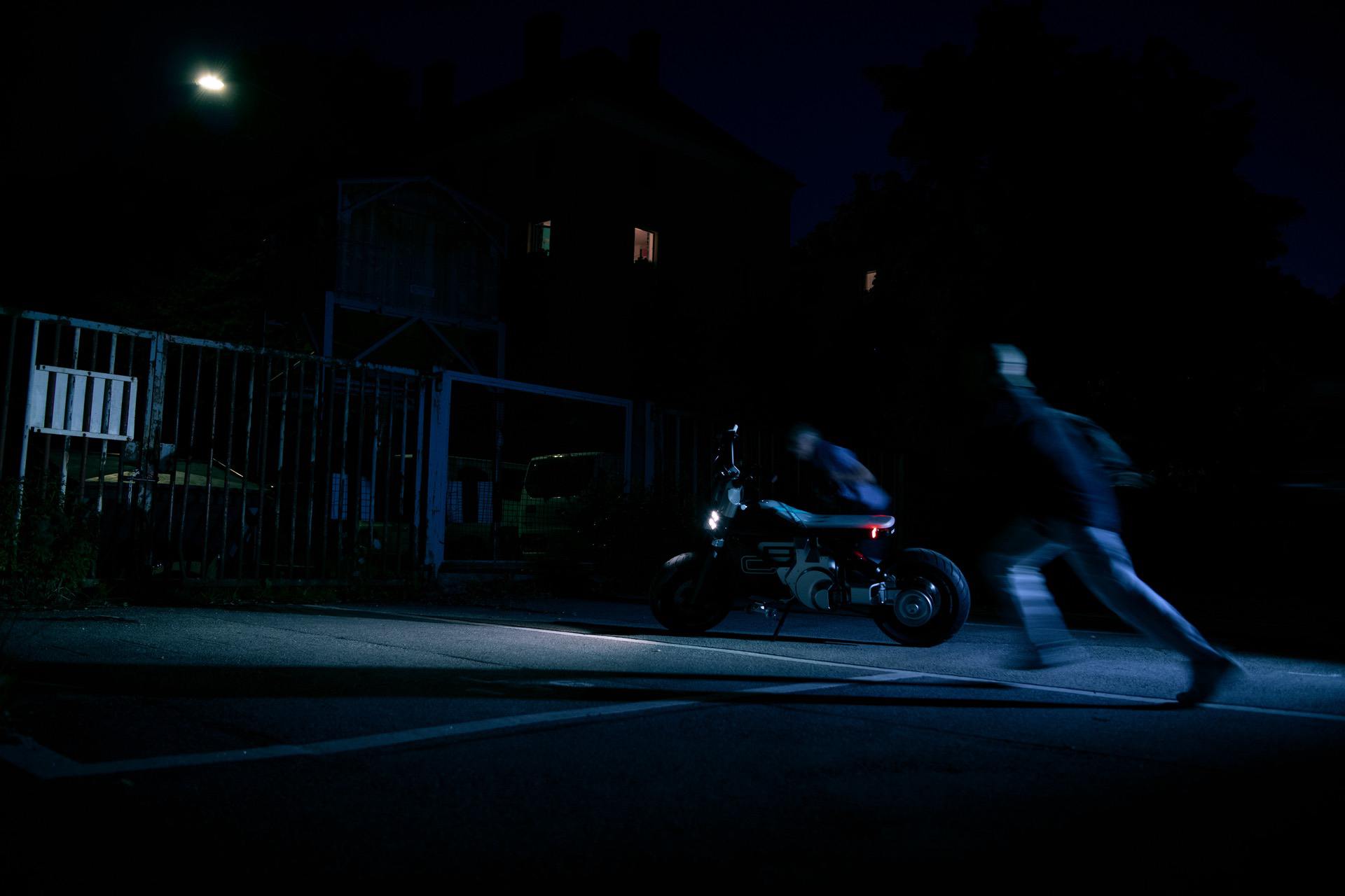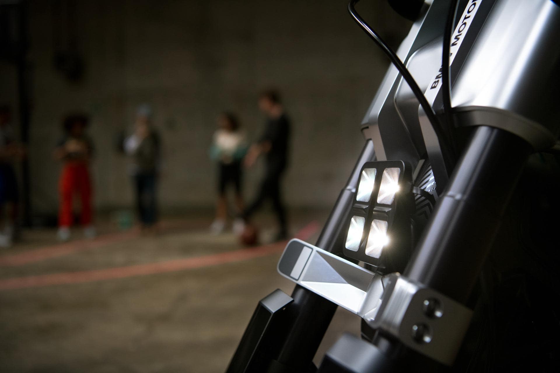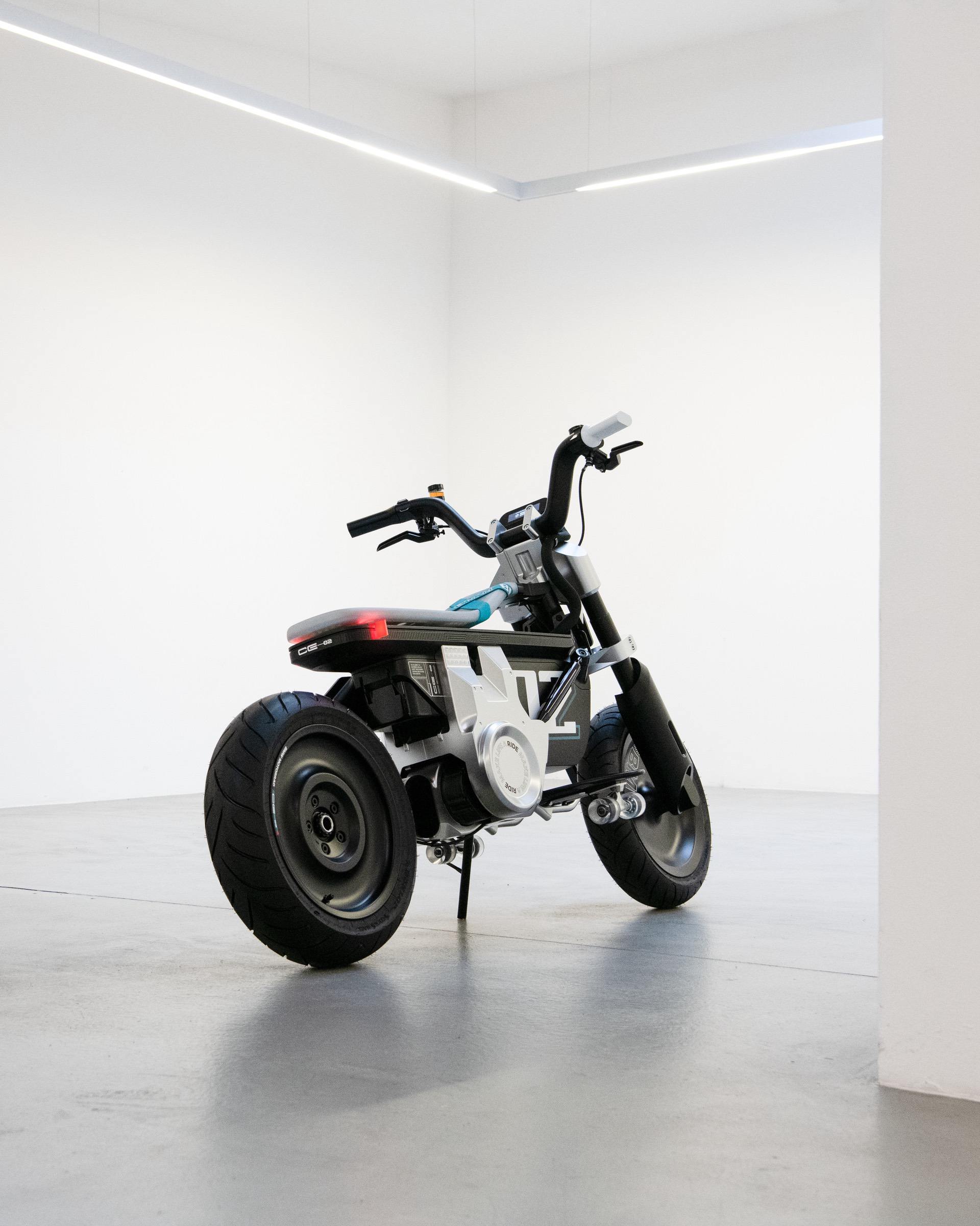 Light is provided by a square, black headlight with four distinctive LED elements as front headlights. The rear light comprises two small, translucent LED leaves that are fixed to the left and right of the rear seat. A small color screen on the handlebars provides basic display functionality. In terms of colour, the BMW Motorrad Concept CE 02 also keeps things purist: black/silver is the underlying scheme.