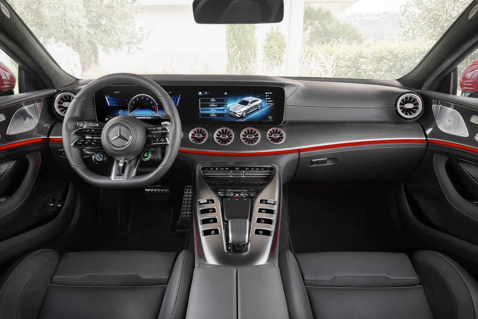 Along with the typical 4.0 liter twin-turbo AMG V8 is a permanent-magnet electric motor, combined with a two-speed gearbox, at the rear axle. The combined system power output is an astonishing 831 horsepower and 1,082 lb-ft of torque. Thanks to 4Matic+ all-wheel drive, AMG claims a 0-60 mph time of 2.9 seconds. Considering the current AMG GT 63 S 4-Door is faster than that already, expect somewhere closer to 2.5 seconds.