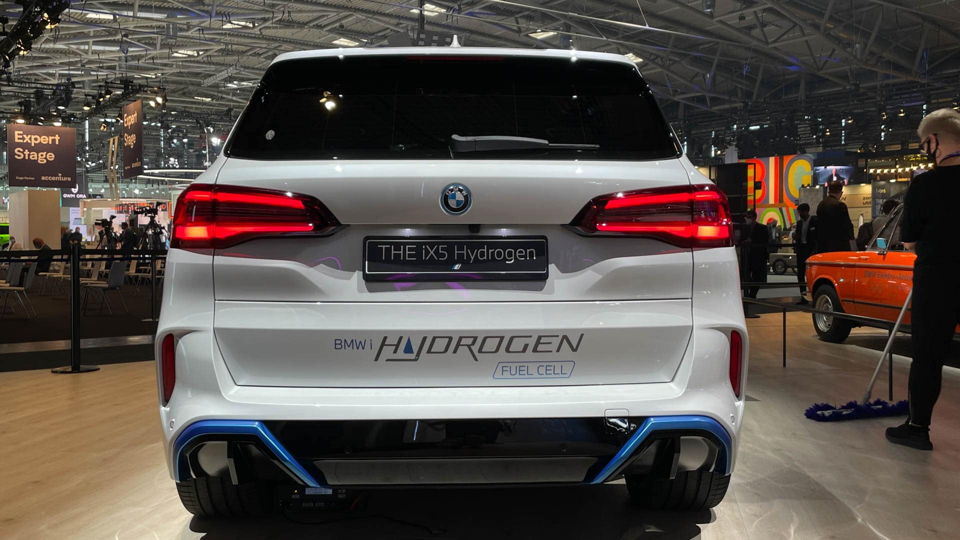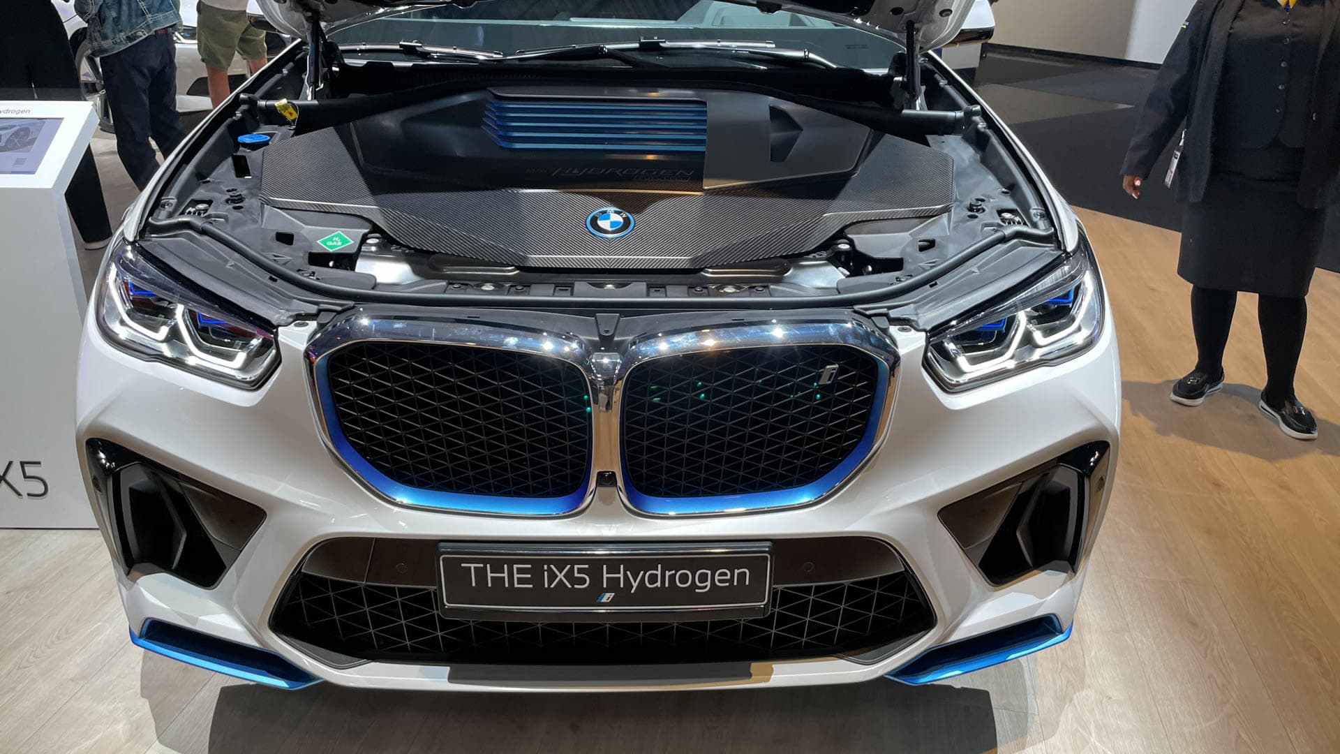 On the outside, the BMW iX5 Hydrogen looks incredibly similar to the BMW iX3; it’s essentially the same as the standard car, just with some blue bits and exhaust tip replacements. So don’t expect anything radical from a design perspective.