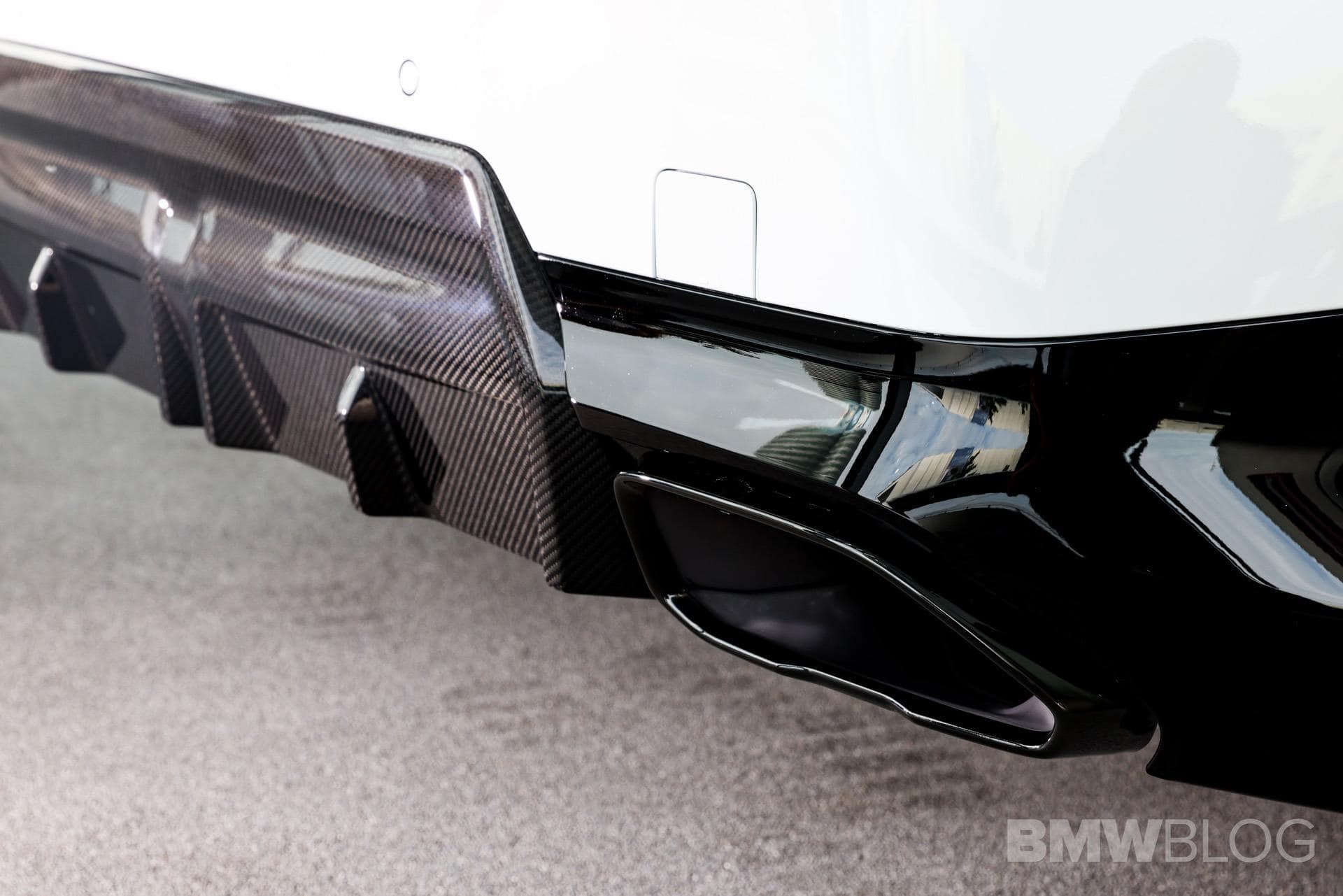 Up front, you can get some carbon fiber parts, such as the grille trim and the front spoiler. Those carbon fiber bits extend down the sides of the car, giving it some little winglets just ahead of the rear wheels, and to the back where a rear spoiler and faux diffuser can be had as well. Interestingly, carbon fiber M3-style mirrors can be given to the 2 Series as well.