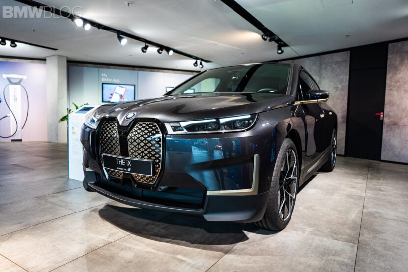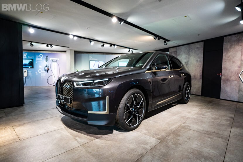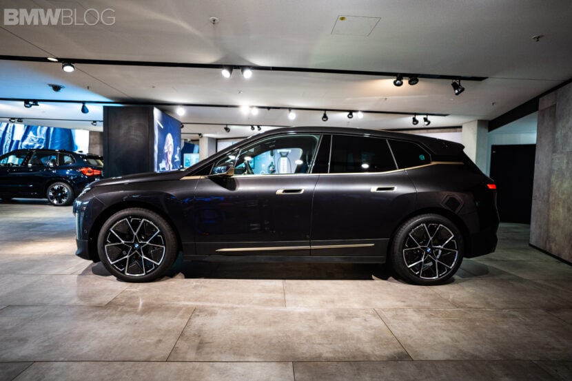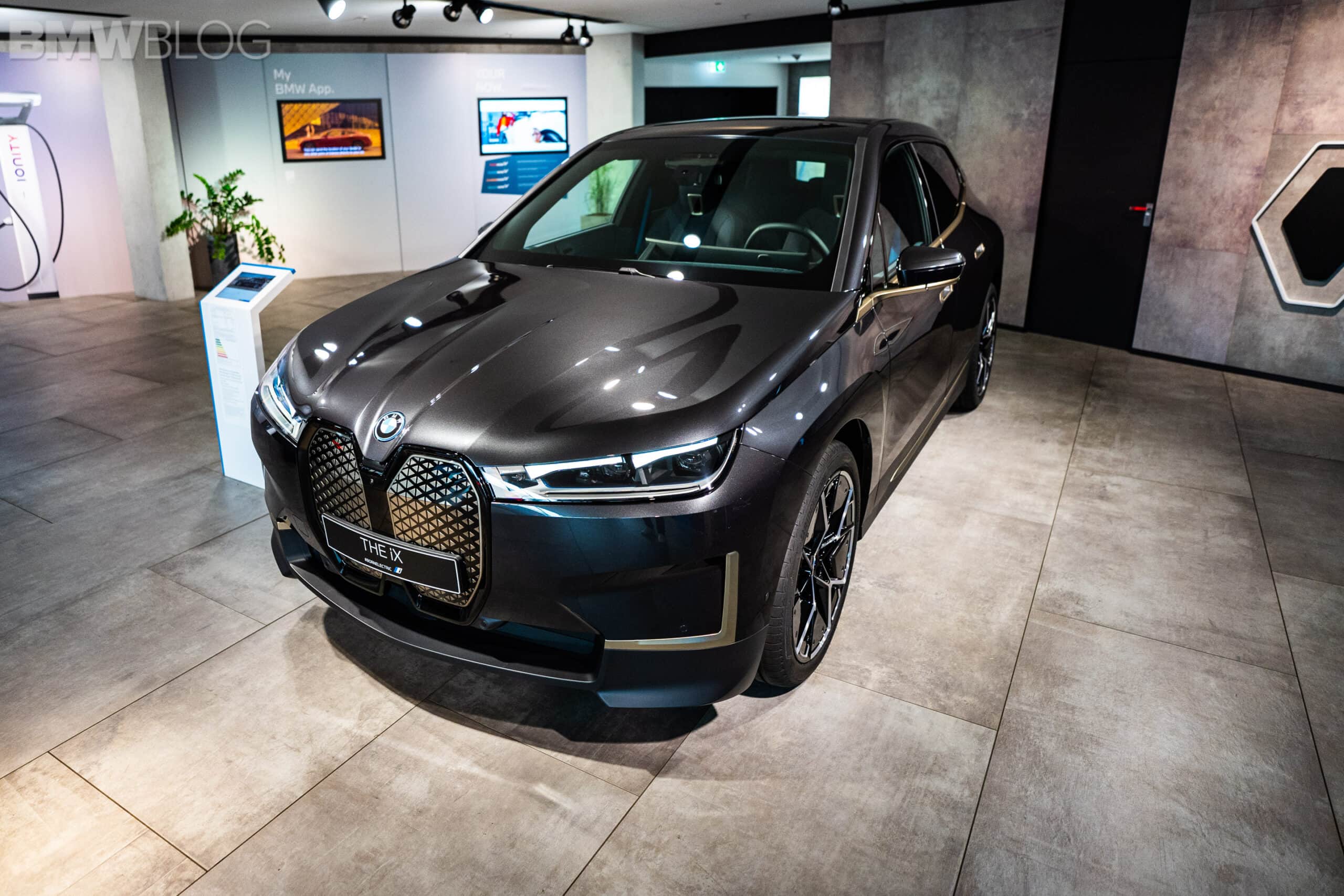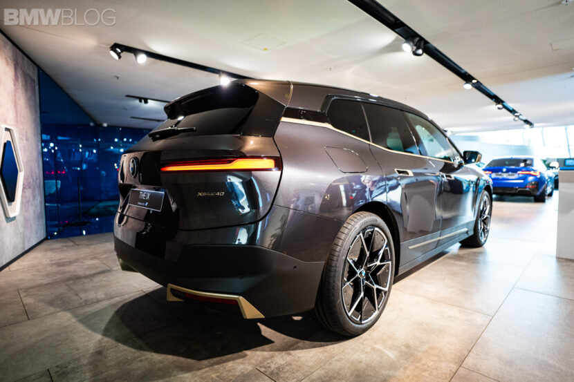 Ahead of our test drive of the new BMW iX, we had the chance to see the electric crossover in real life at the BMW Welt in Munich. Compared to the BMW Individual Aventurine Red metallic launch color, the iX displayed at the Welt was painted in Sophisto Grey. Furthermore, the darker shade of grey was paired with bronze elements for an additional premium look.