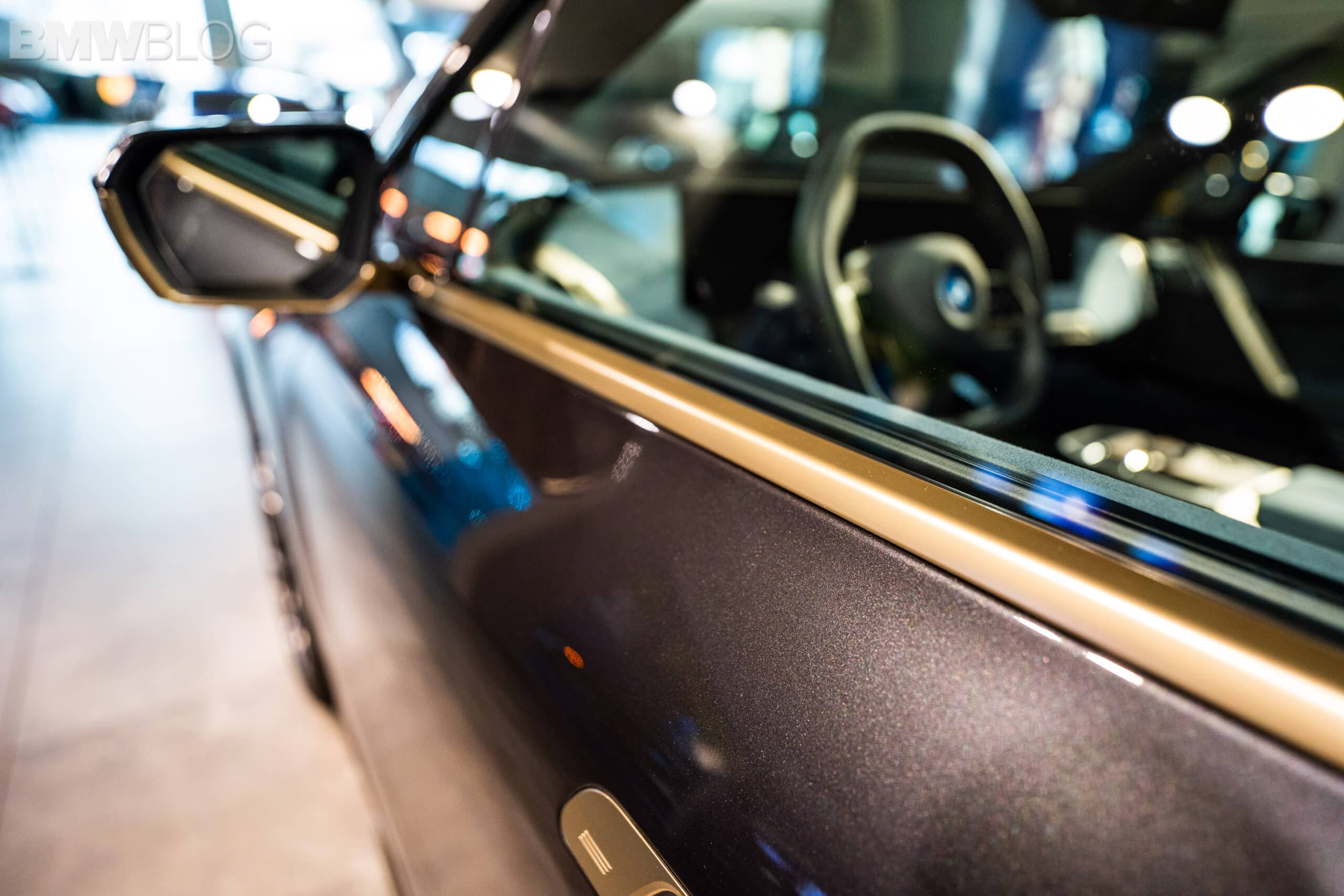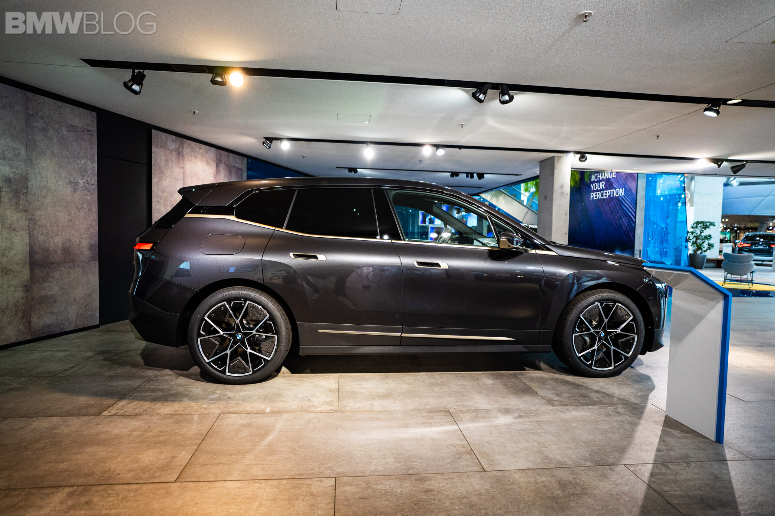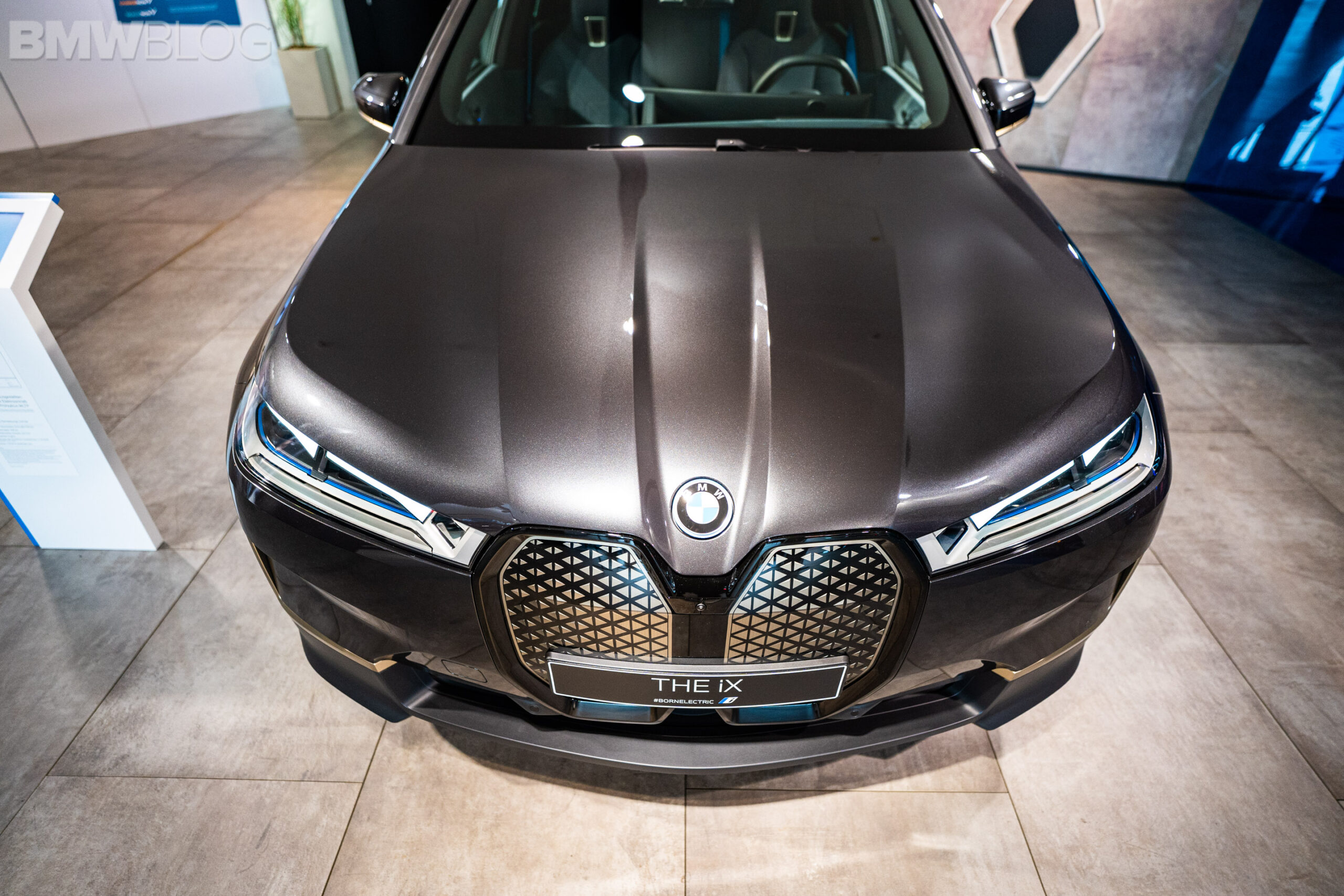 Ahead of our test drive of the new BMW iX, we had the chance to see the electric crossover in real life at the BMW Welt in Munich. Compared to the BMW Individual Aventurine Red metallic launch color, the iX displayed at the Welt was painted in Sophisto Grey. Furthermore, the darker shade of grey was paired with bronze elements for an additional premium look.