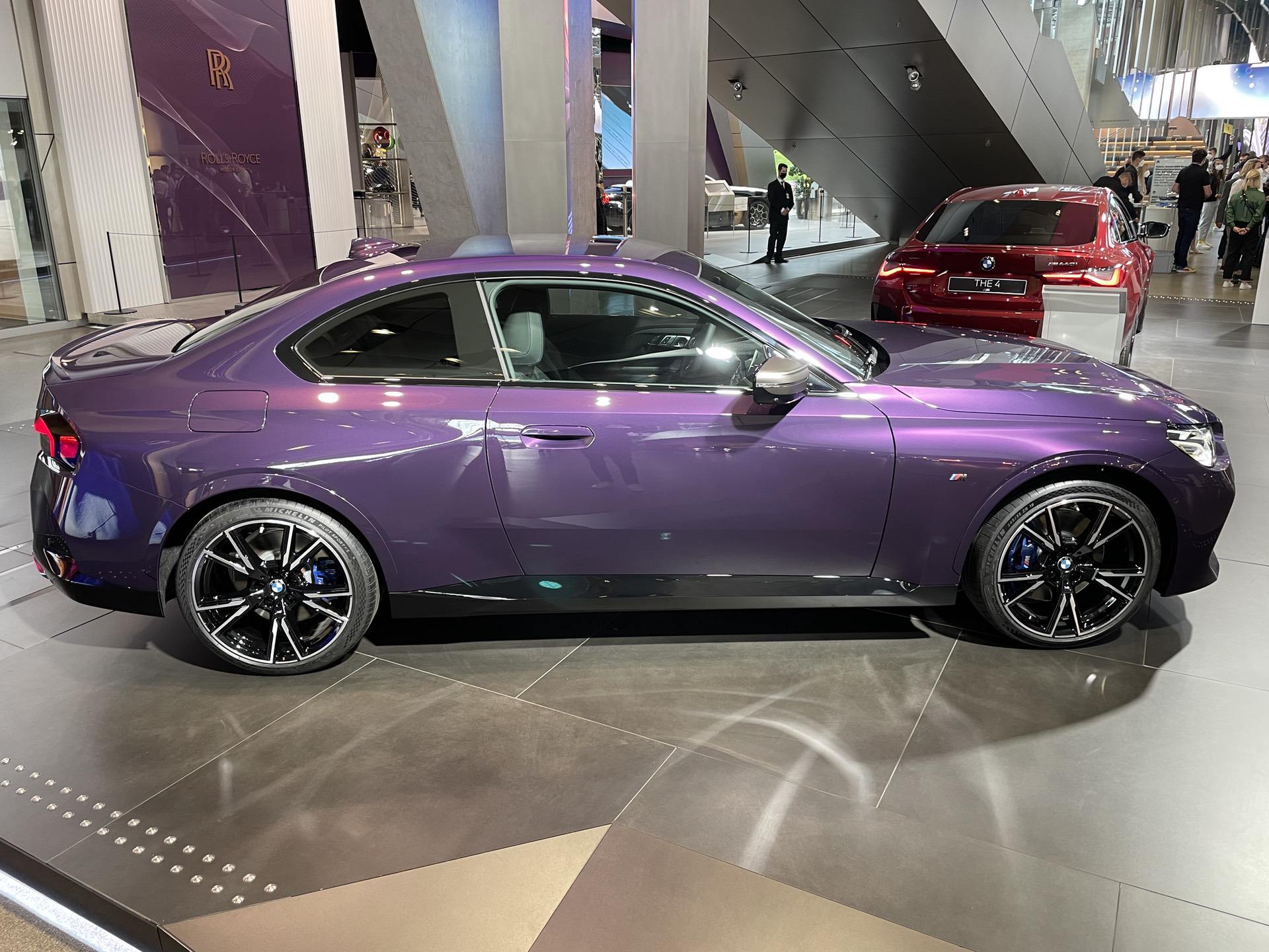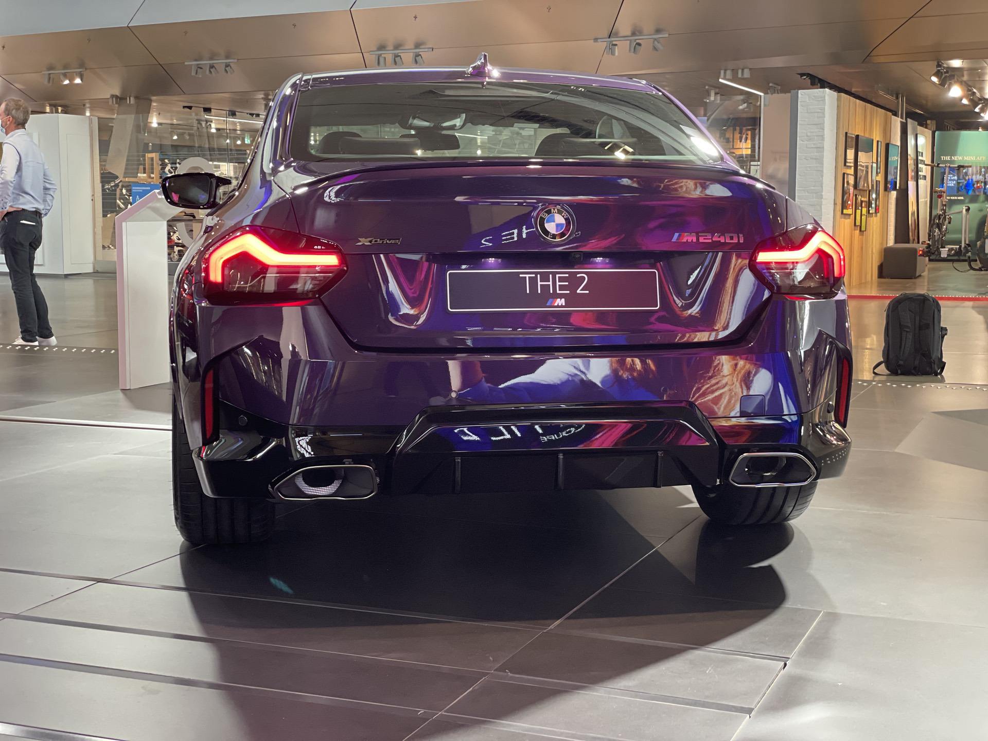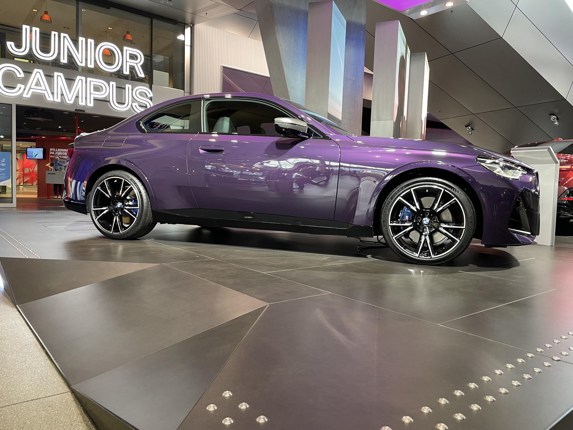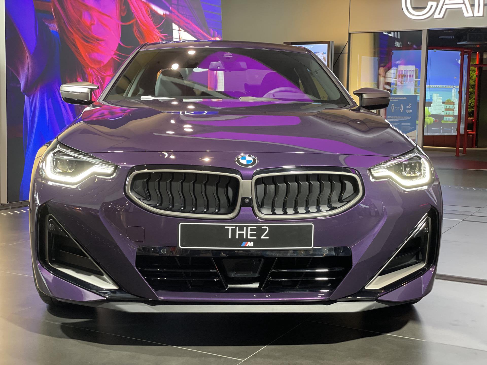 The new BMW 2 Series Coupe is now part of the BMW Welt exhibit. A Thundernight Metallic M240i xDrive is greeting the visitors as soon as they enter the iconic building in the heart of Munich. The new purple color is a first for BMW and, for now, it is exclusive to the G42 2 Series Coupe. Thankfully, all 2 Series variants come with a few great color options, such as Melbourne Red, Portimao Blue or Brooklyn Grey. The rest are your typical BMW colors; Alpine White, Jet Black (non-M240i models only) and Black Sapphire Metallic.
