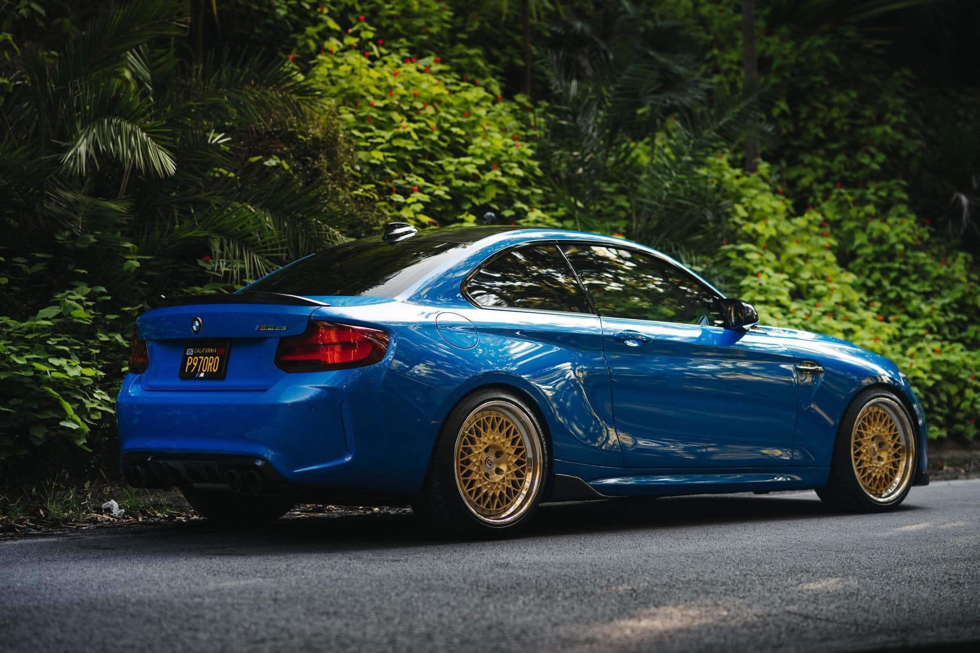 Also, Brushed Gold is the right finish for these wheels, regardless of car. I mean, c’mon. Look at ’em. The gold finish also contrasts the Misano Blue paint of the M2 CS. It’s just a winning combo all around; the car, the wheel design, the finish, and the brand.