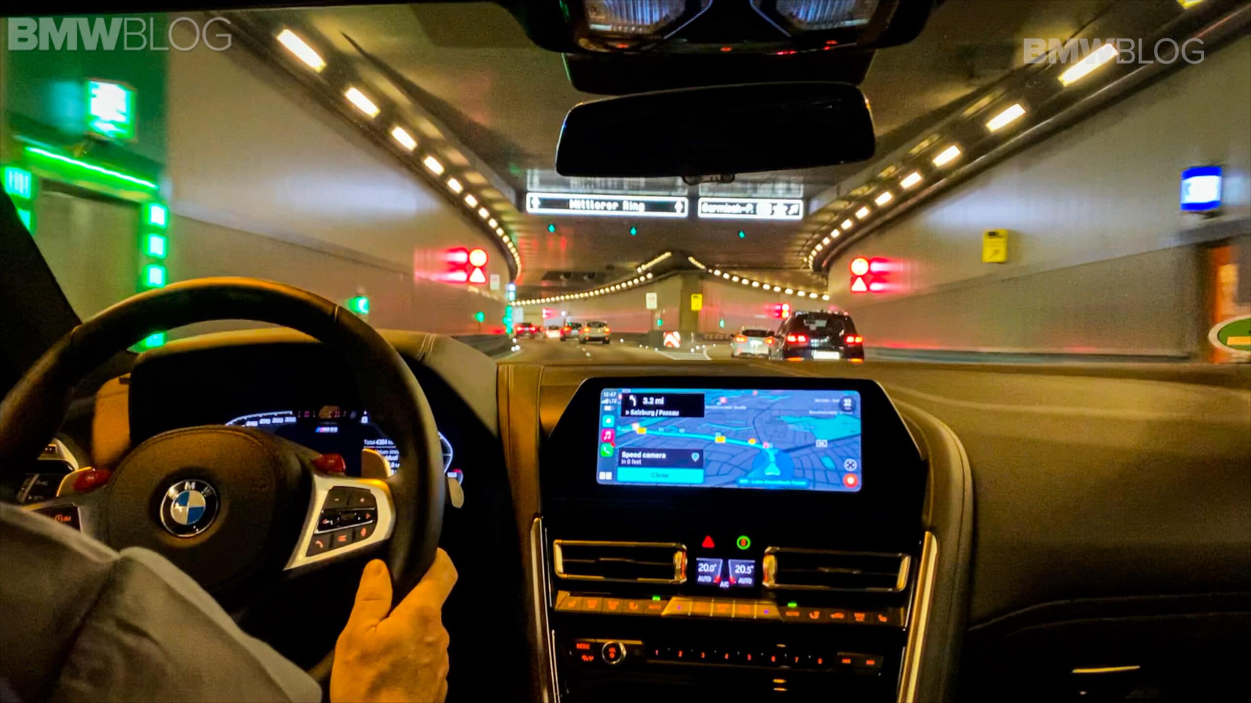 Not only is the M8 Gran Coupe a rocket from 0-60, its acceleration over 100 mph is breathtaking. When we finally hit an opening on the Autobahn, I nailed the accelerator. Oh that exhaust note! The transmission immediately dropped a couple of gears and we shot down the road. The longer wheelbase of the M8 Gran Coupe, low center of gravity, and immense grip from the 20 inch wheels make for an amazing amount of hight speed stability.