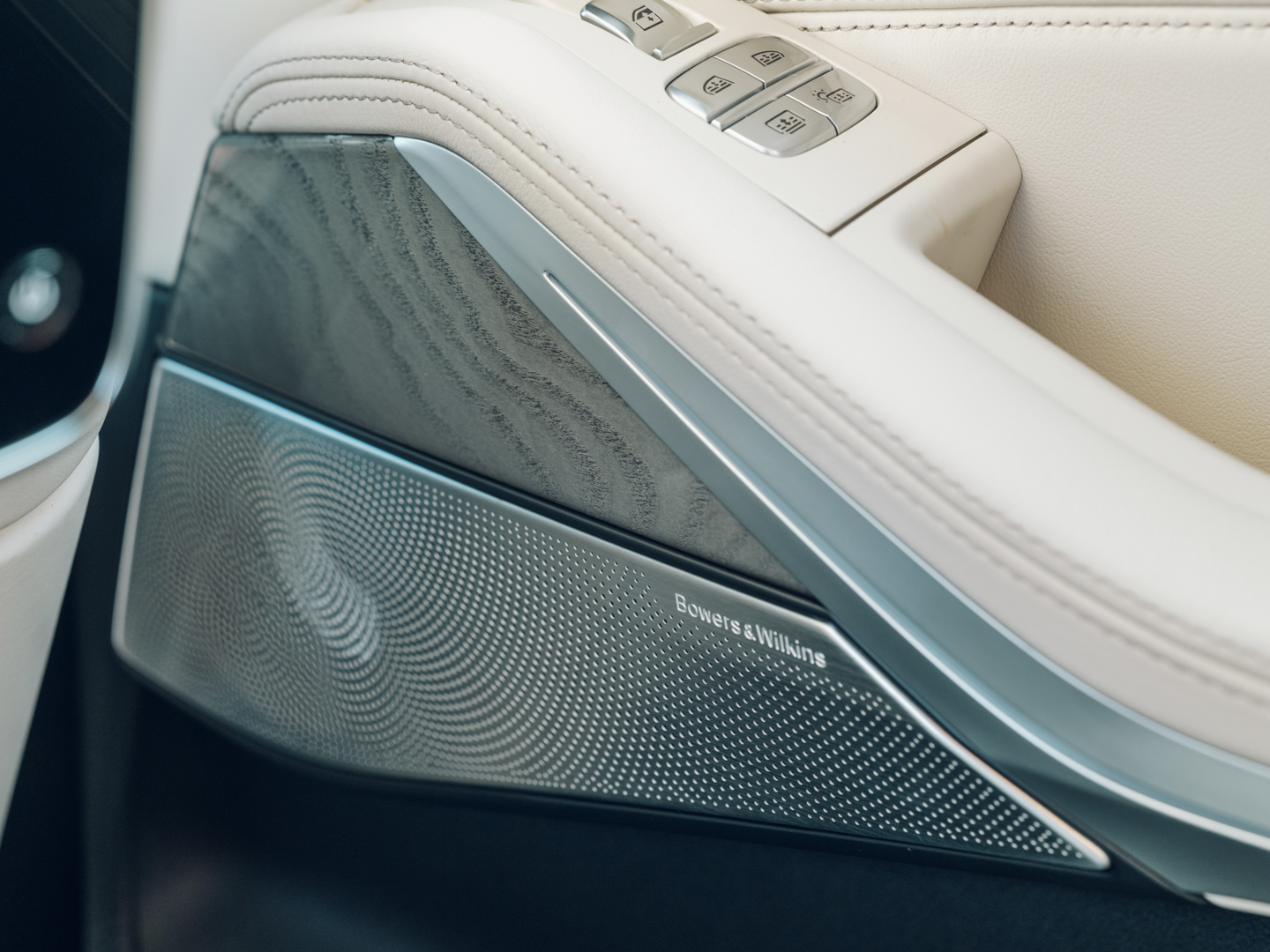 For the leather on the center armrest, the same foil is applied to the merino leather and it’s all woven together using silk warp threads. There’s also some depth added to the design, with the white three-dimensional weave, featuring the image of Keiun, said to be a “beautiful, happy cloud”, a design typically said to be a sign of congratulations.