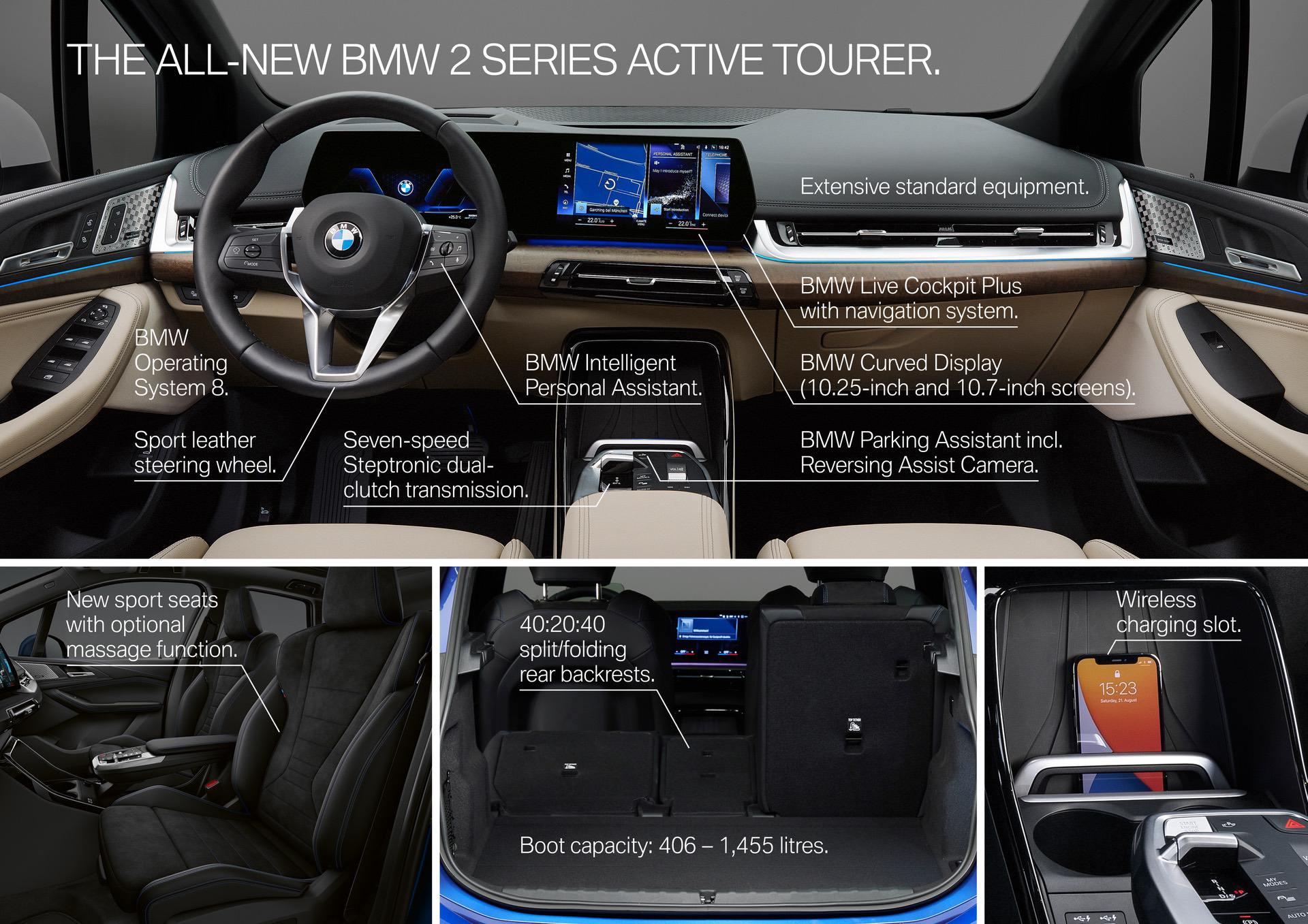 Despite being one of BMW’s cheaper cars, the 2 Series Active Tourer will come available with its best tech. The newest iDrive 8 system that debuted on the BMW iX will make it to the 2 Series Active Tourer, providing all of the brand’s latest infotainment features. It will also get the latest Live Cockpit Professional digital instrument panel. It features new graphics and upgraded functionality. Additionally, the 2 Series Active Tourer gets BMW’s latest personal voice assistant and the brand’s park assist functions. So while the 2 Series AT might not be the most luxurious or expensive BMW, customers won’t want for technology.