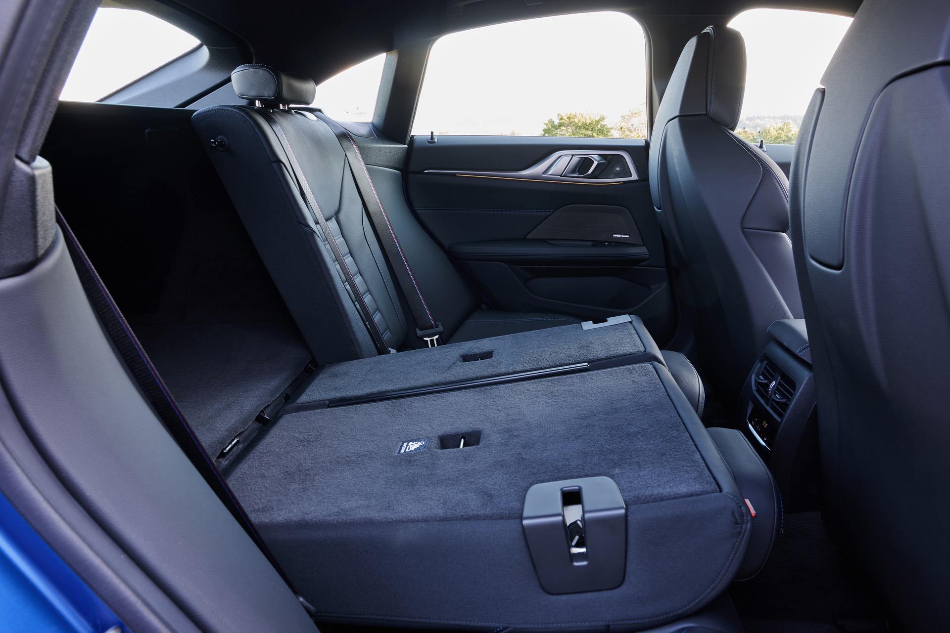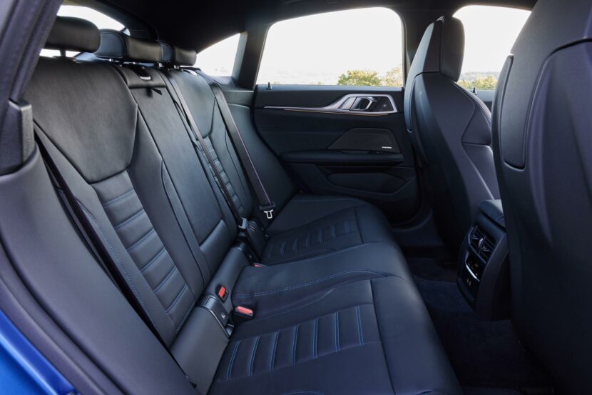 The interior of the car was quite familiar: a large and curved digital panel, iDrive 8, and the typical setup of the center console which includes blue accents. The driver-oriented layout is also present, along with sport seats and a sport steering wheel. The rear seating are what you’d expect in a gran coupe: restricted headroom if you’re on the taller side, but overall a comfortable riding position.