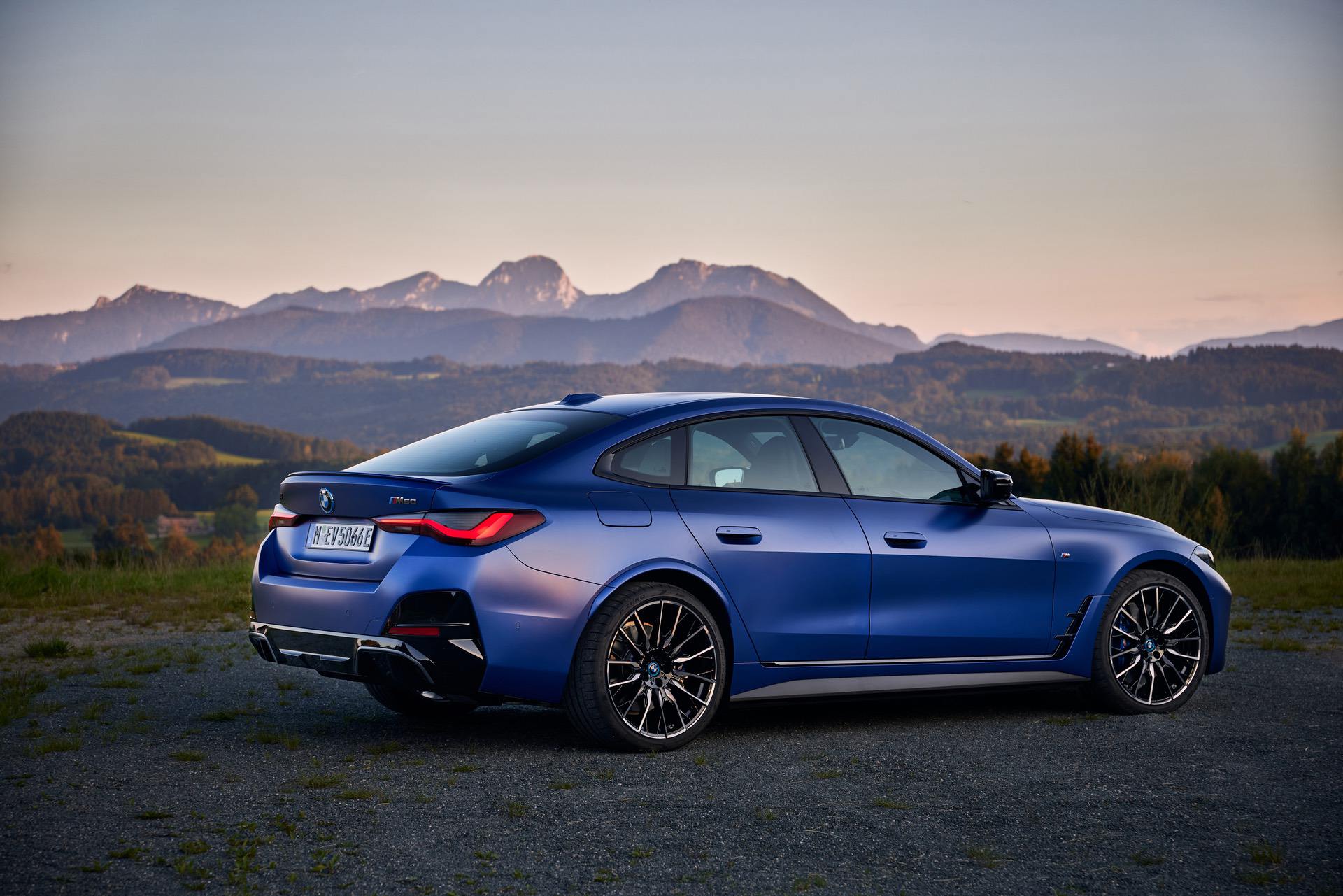 The BMW i4 M50 is the only all-wheel drive model of the new i4 family. The dual-motors make 544 horsepower (400 kW) and 586 lb-ft of torque (795 Nm). All i4 cars use the same 81.5 net-energy battery pack but the i4 M50 has around 245 miles of range. If you want more range – around 300 miles on EPA rating – you can opt for the rear-wheel drive i4 eDrive40. Thanks to the massive power and torque, the BMW i4 M50 runs from 0 to 62 mph (0-100 km/h) in 3.9 seconds. The top speed is limited to 140 mph (225 km/h). The i4 M50 checks in with a DIN weight of 2,215 kg (4,883 lbs), and an EU weight of 2,290 (5,048 lbs).
