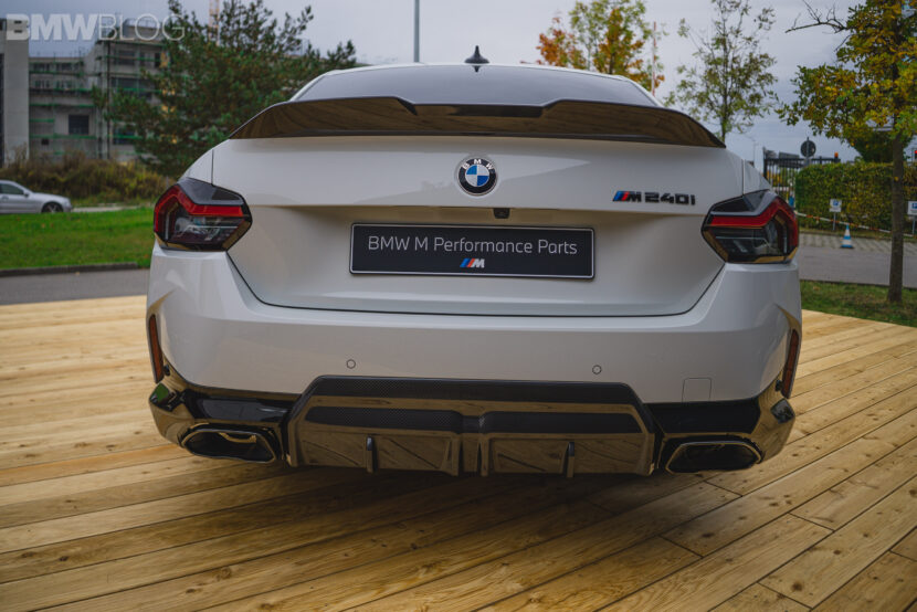 Out back, a carbon fiber rear spoiler — which looks a lot like the M2 CS spoiler — gives it a sportier look, while the carbon fiber pseudo diffuser complements the black exhausts. It’s a wide, aggressive, and sporty looking rear end that makes the M240i look like a genuine performance car.