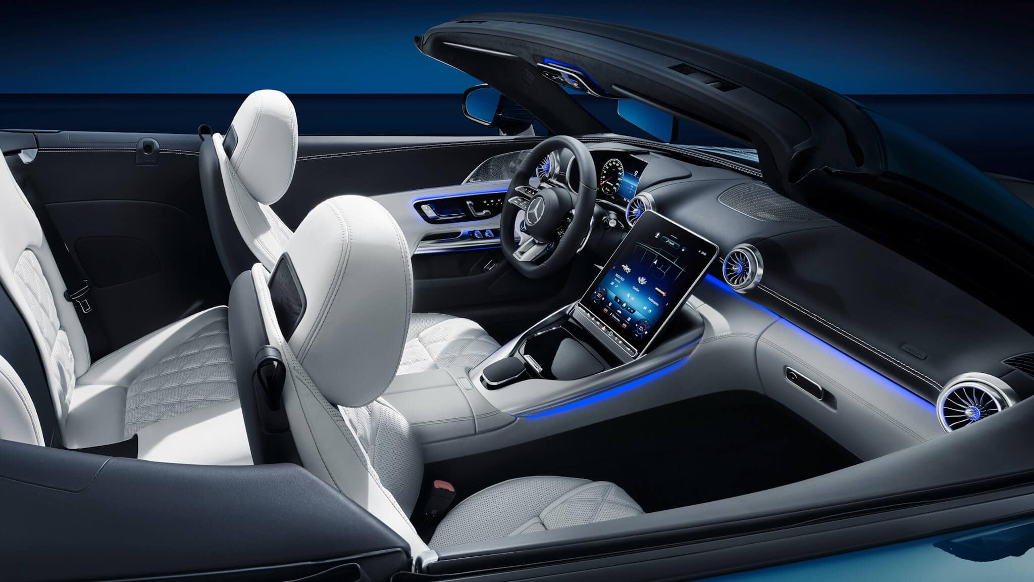 The driver gets an all-digital instrument cluster measuring 12.3 inches and customers can spend extra to order the SL with an optional head-up display featuring nifty augmented reality that superimposes data onto the glass lens located in the driver’s line of sight. A signature Mercedes feature on convertibles, there’s a heating system at neck level for the driver and front passenger, known as Airscarf and mounted in the headrests.