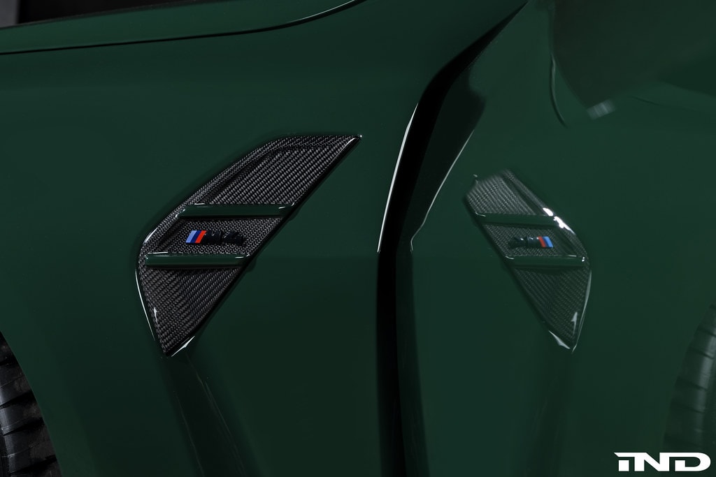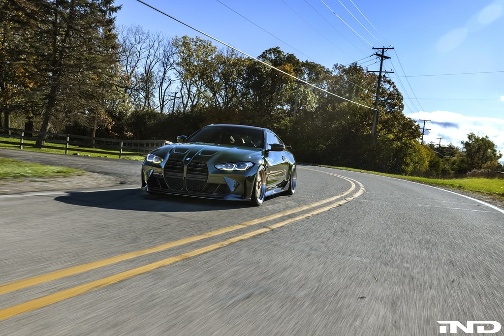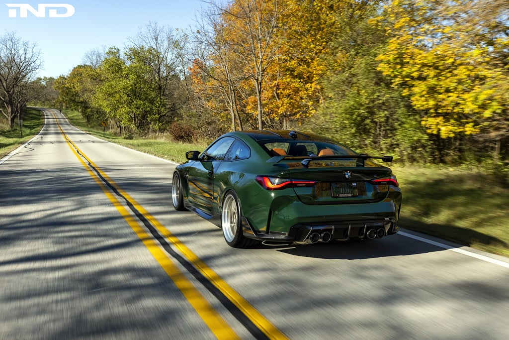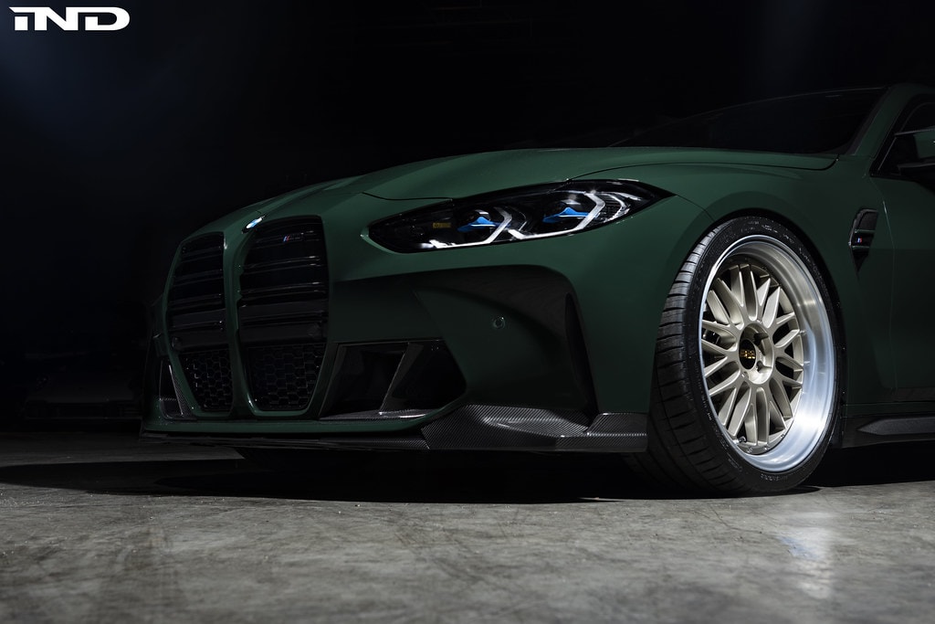 IND Distribution set up shop 15 years ago and will be heading to SEMA next week to celebrate the milestone with a new build based on the 2021 BMW M4 Coupe. What used to be an Alpine White G82 is now finished in a lovely shade of British Racing Green contrasted by the 20-inch BBS wheels with gold accents to make a bold statement. The paint choice was inspired by the European E36 M3 GT as well as the AC Schnitzer CLS II.