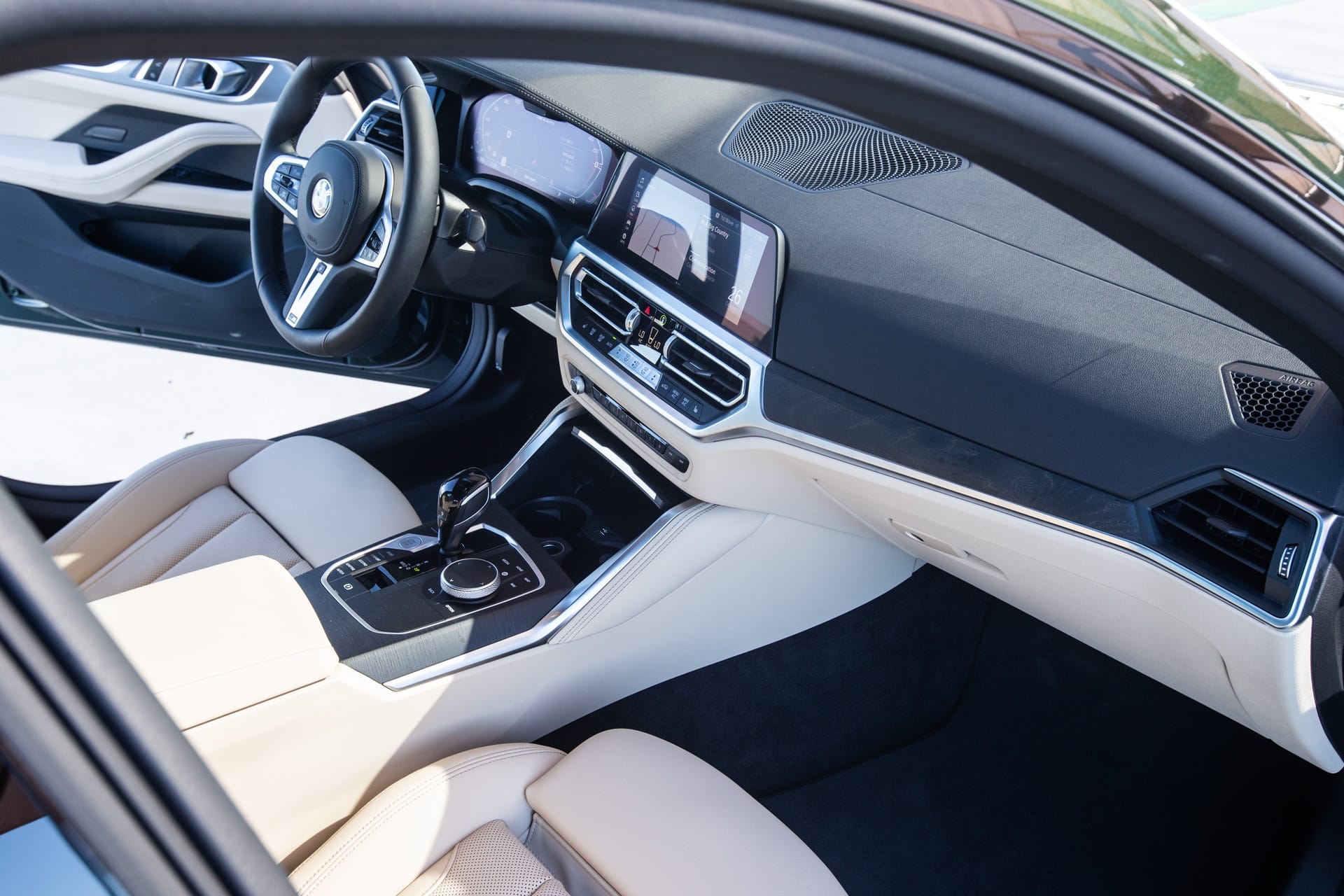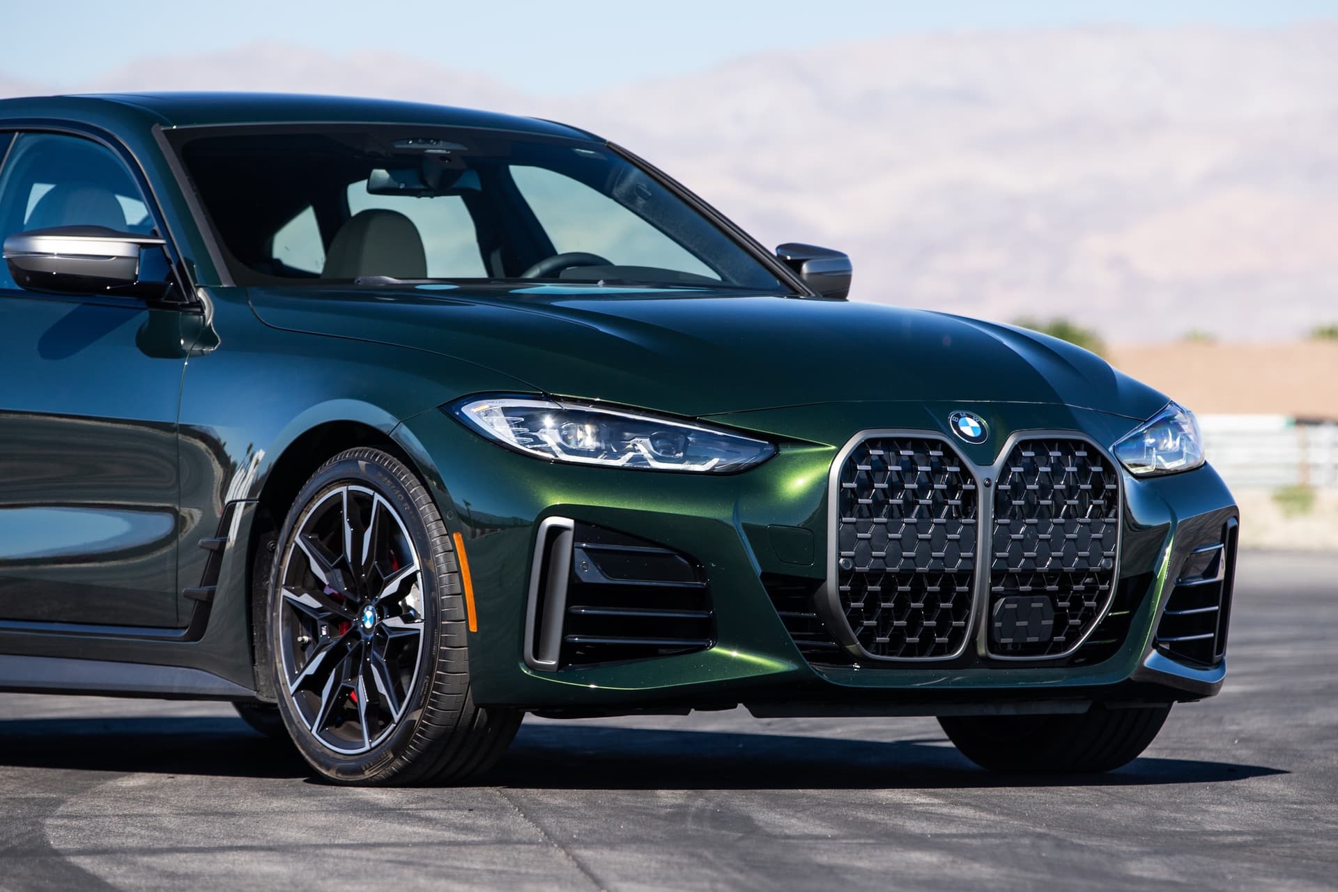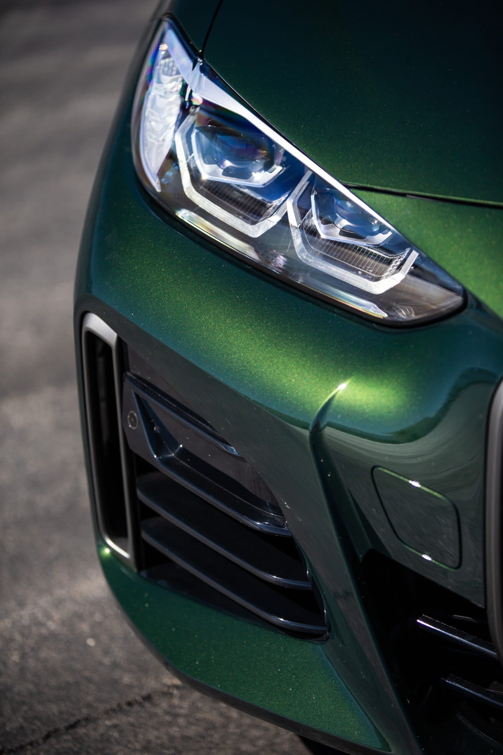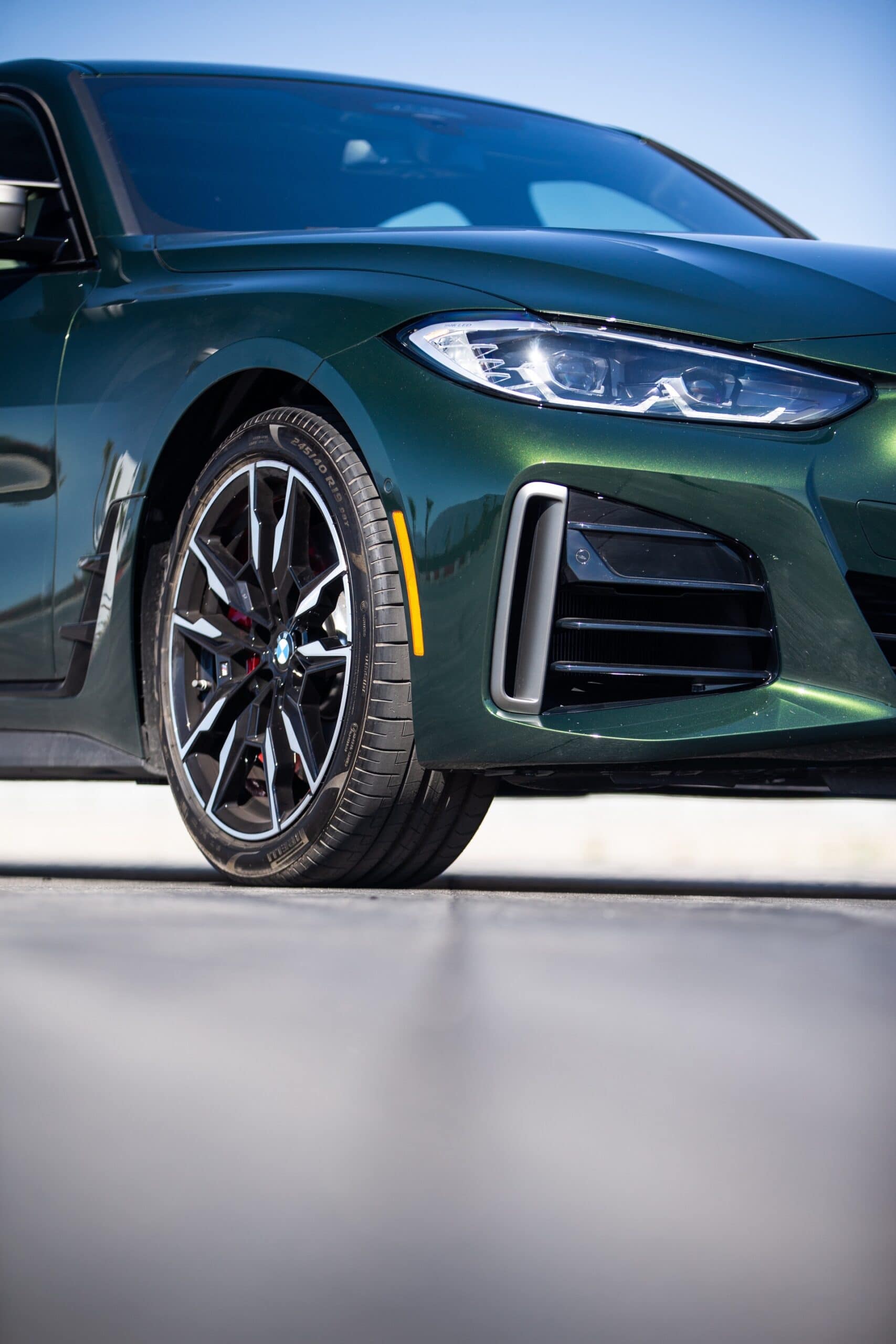 In fairness, the BMW M440i is a good looking car from the headlights back, so it looks good in most colors. However, San Remo Green is a great color. It’s vibrant but not too flashy and gives the M440i a bit of an exotic look. In sunlight, the bright green metallic paint shines, giving it some real life. However, in shade, it looks dark and moody. It has a great duality that makes it attractive for both bright and sunny locations but also for city nightlife.