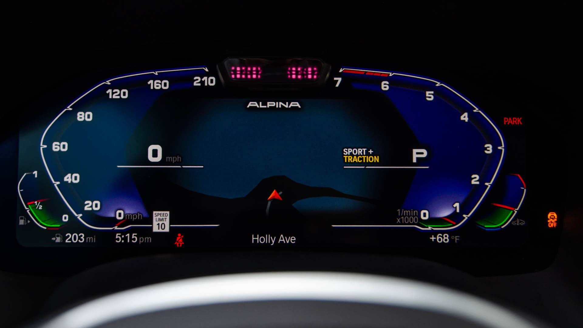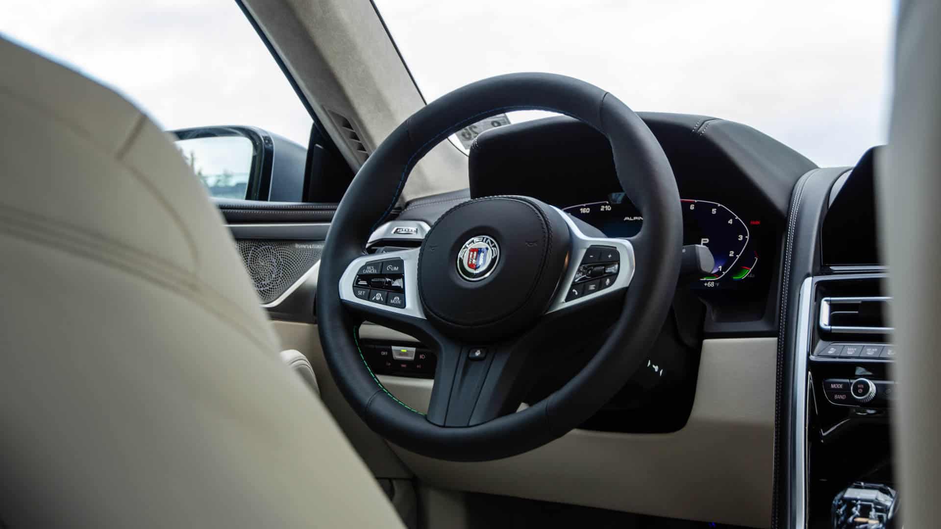 ALPINA replaces the N63’s pistons, turbochargers, intercooler, intake manifold, exhaust manifold, and exhaust. The new turbochargers are larger and twin-scroll units, providing more low-end torque and, seemingly, a smoother powerband. The final result is an engine that makes 612 horsepower and 590 lb-ft of torque. For reference, that’s almost as much power as the BMW M8 Gran Coupe Competition (617 horsepower) but more torque than it (553 lb-ft). While the ALPINA B8 is probably a tenth or two slower to 60 mph, doing the run in a claimed 3.3 seconds. However, it feels every bit as teleportation-quick as the M8.