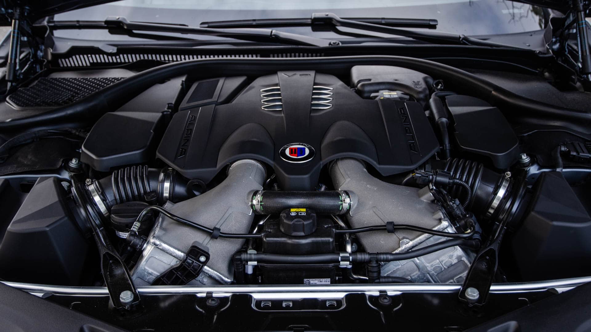 Under the hood of the ALPINA B8 lies a monster 4.4 liter twin-turbo V8, similar to the one found in the BMW M8 Gran Coupe but it’s not the same. Both the M8’s S63 and the B8’s ALPINA engine start out life as the same mill — a BMW-sourced N63 engine. However, they’re both specifically modified for their individual needs. For ALPINA-duty, the N63 engine gets quite the comprehensive tear down and upgrade.