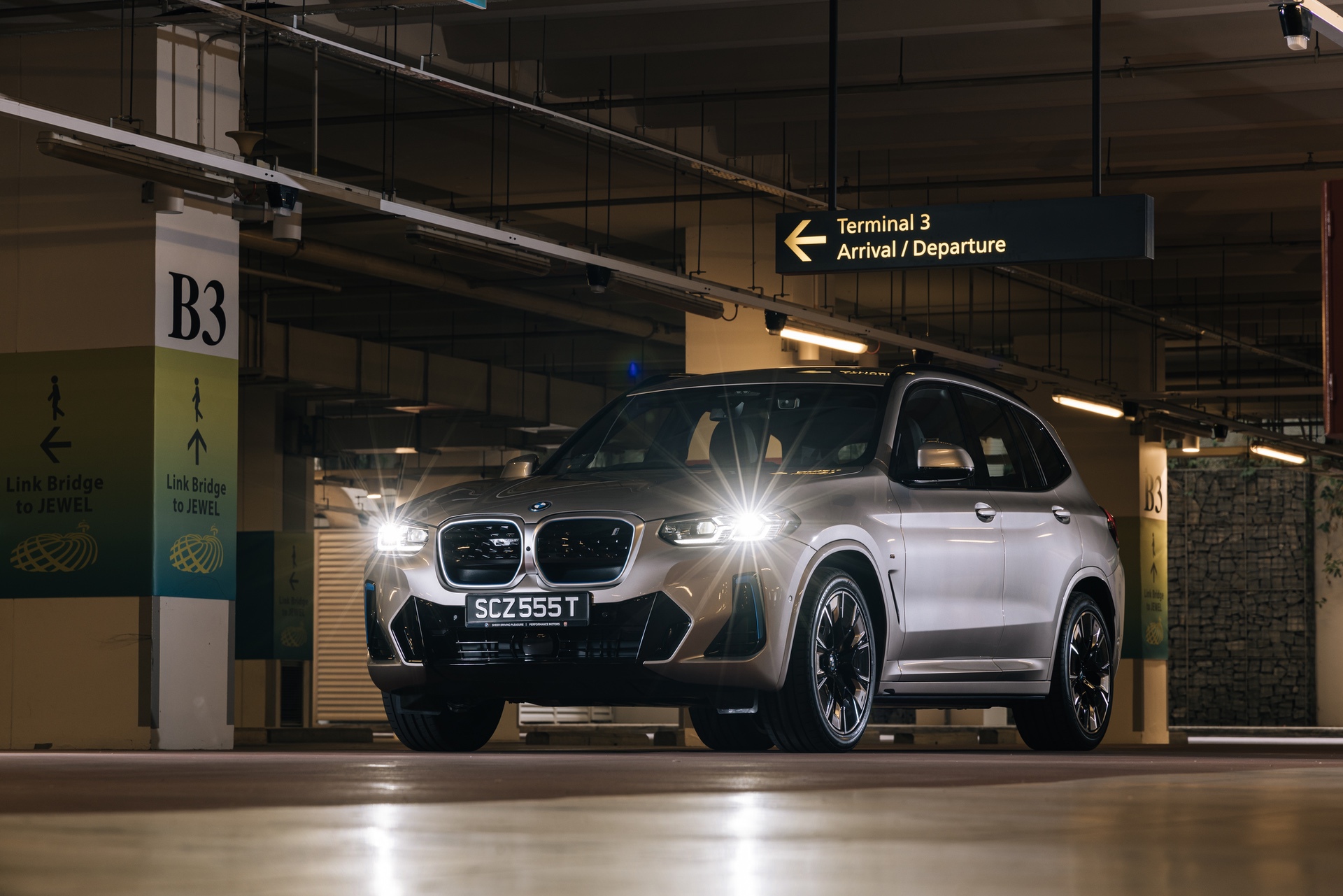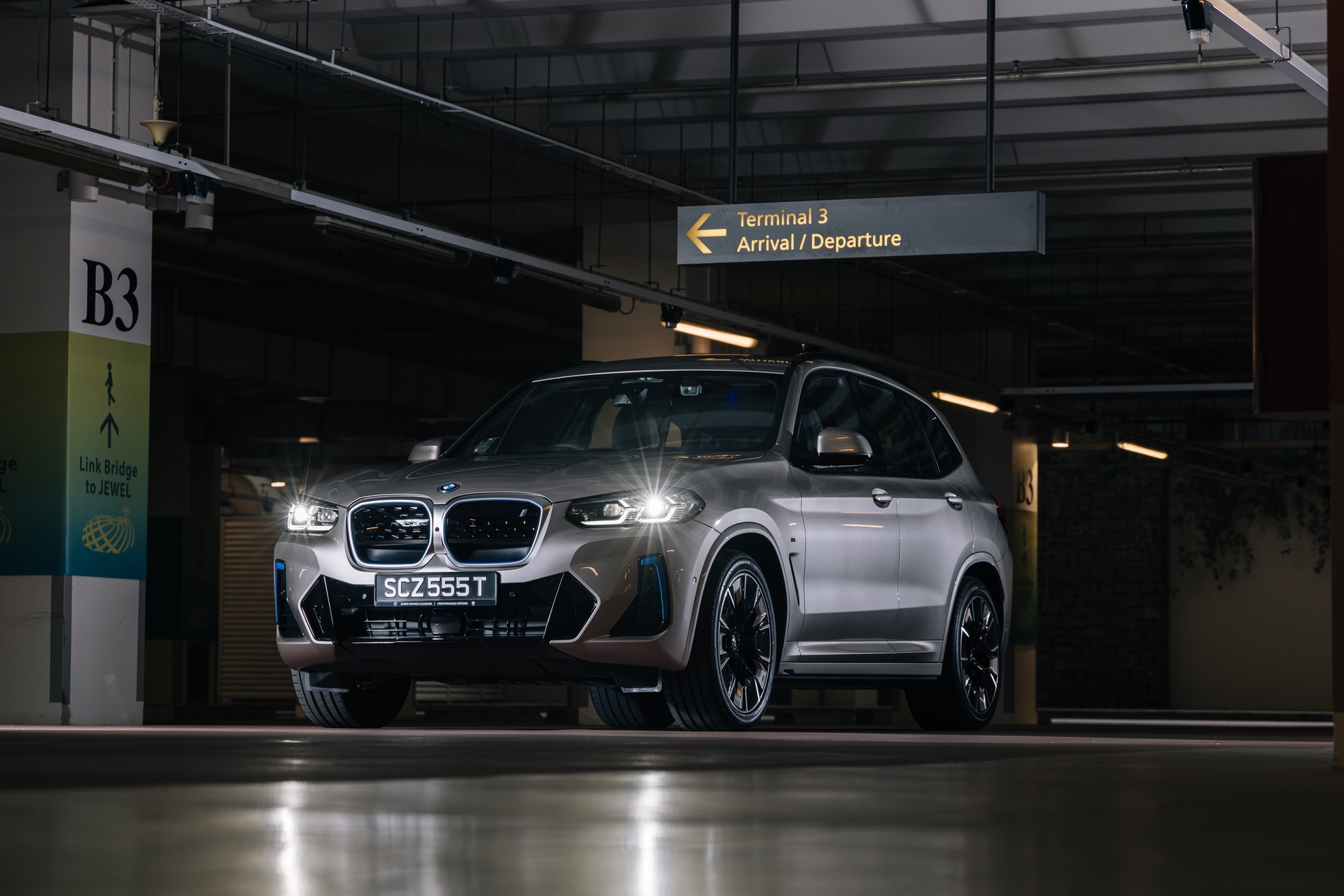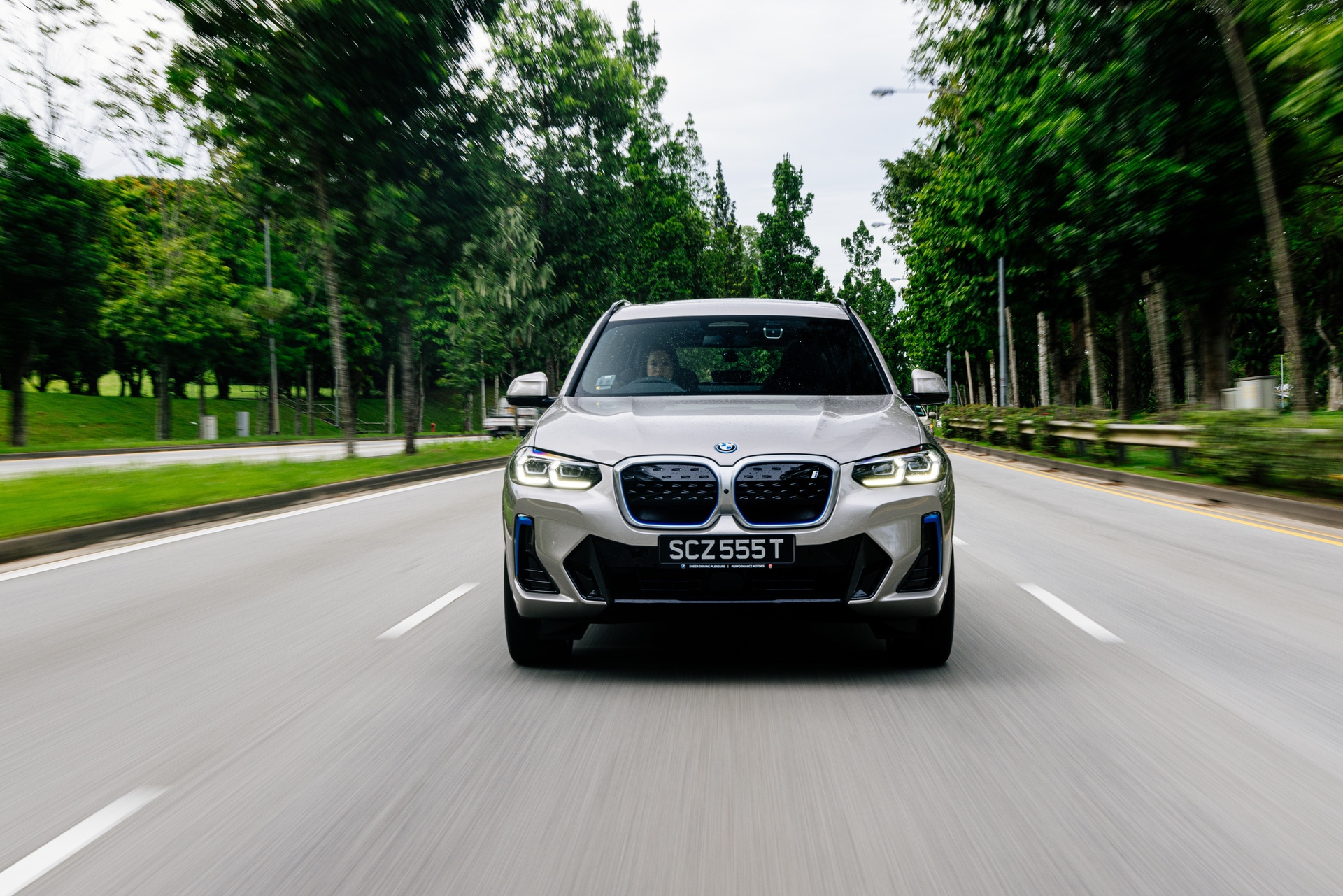 After its European debut, the 2022 BMW iX3 Facelift crossover SUV lands in Singapore for the local market launch. The car’s new design is showcased through an extensive photoshoot which emphasizes the sportiness of the facelifted electric SUV. The 2022 BMW iX3 now features a modified design for the headlights which are 10 millimeters slimmer than on the outgoing model. The kidney grille has gone through changes as well and it is now larger in size and featuring a single-piece frame. It is painted in the Pearl-effect Chrome with a few blue accents on the outer edges. The slats are now in-line with other BMW models and feature a mesh pattern.