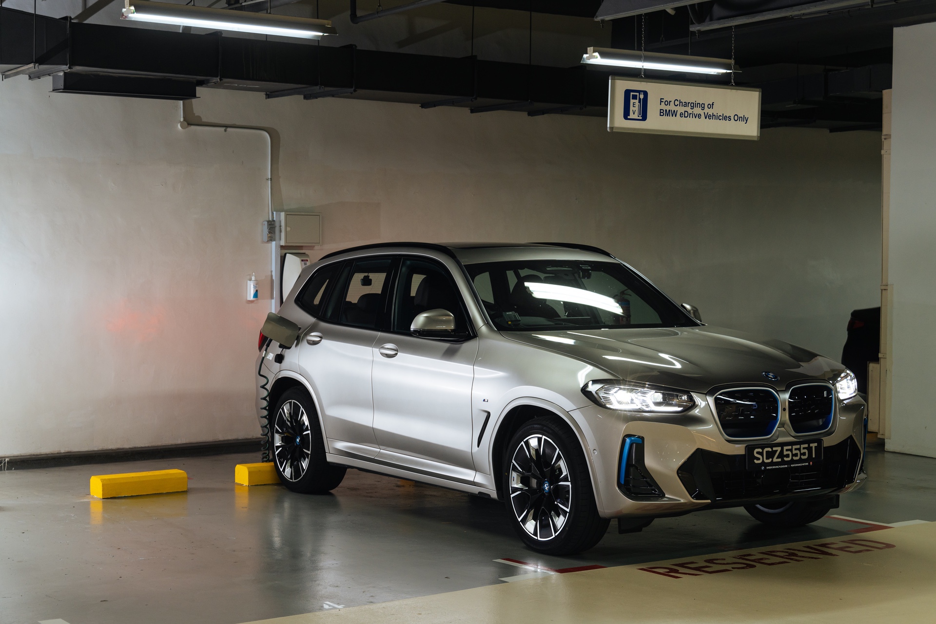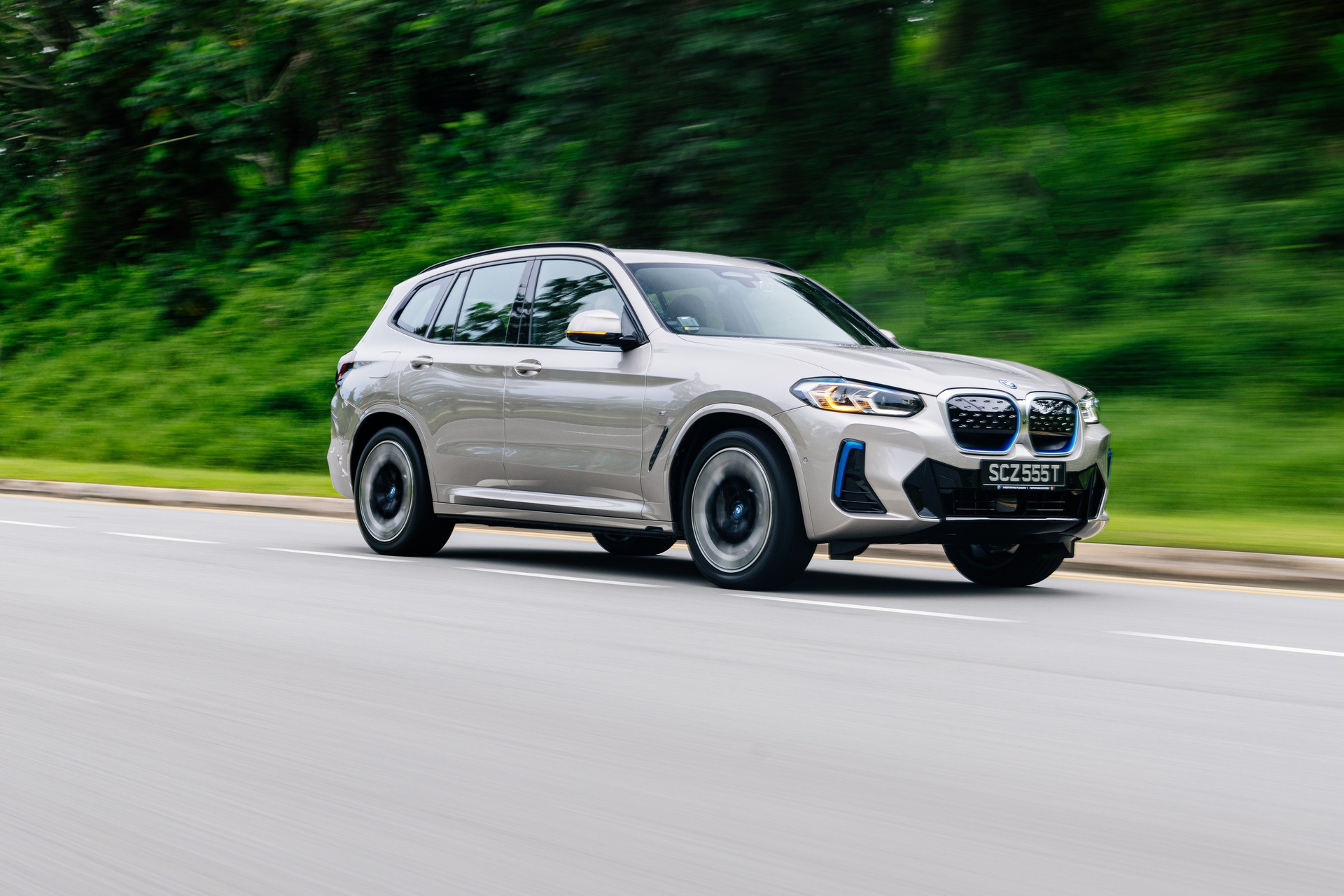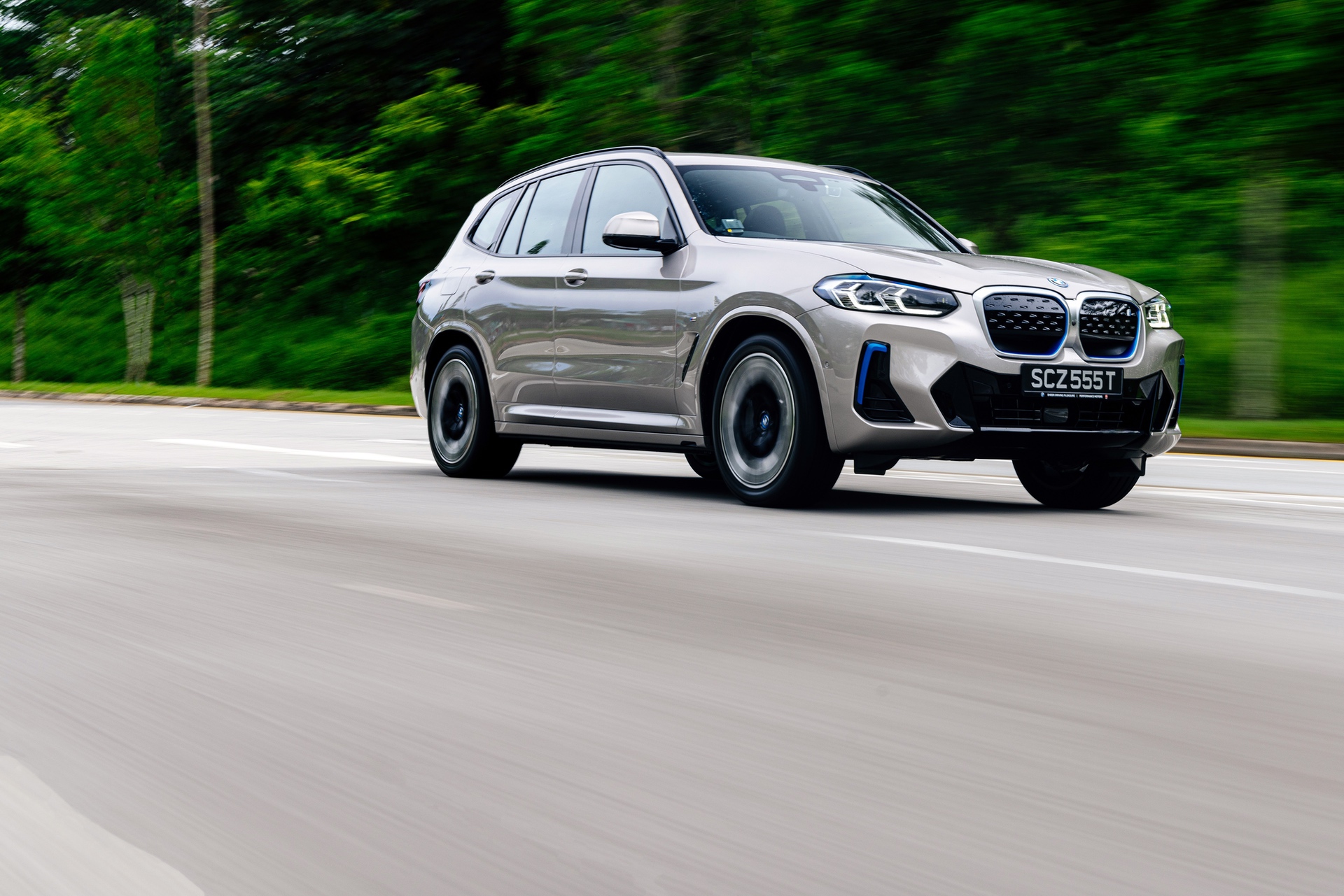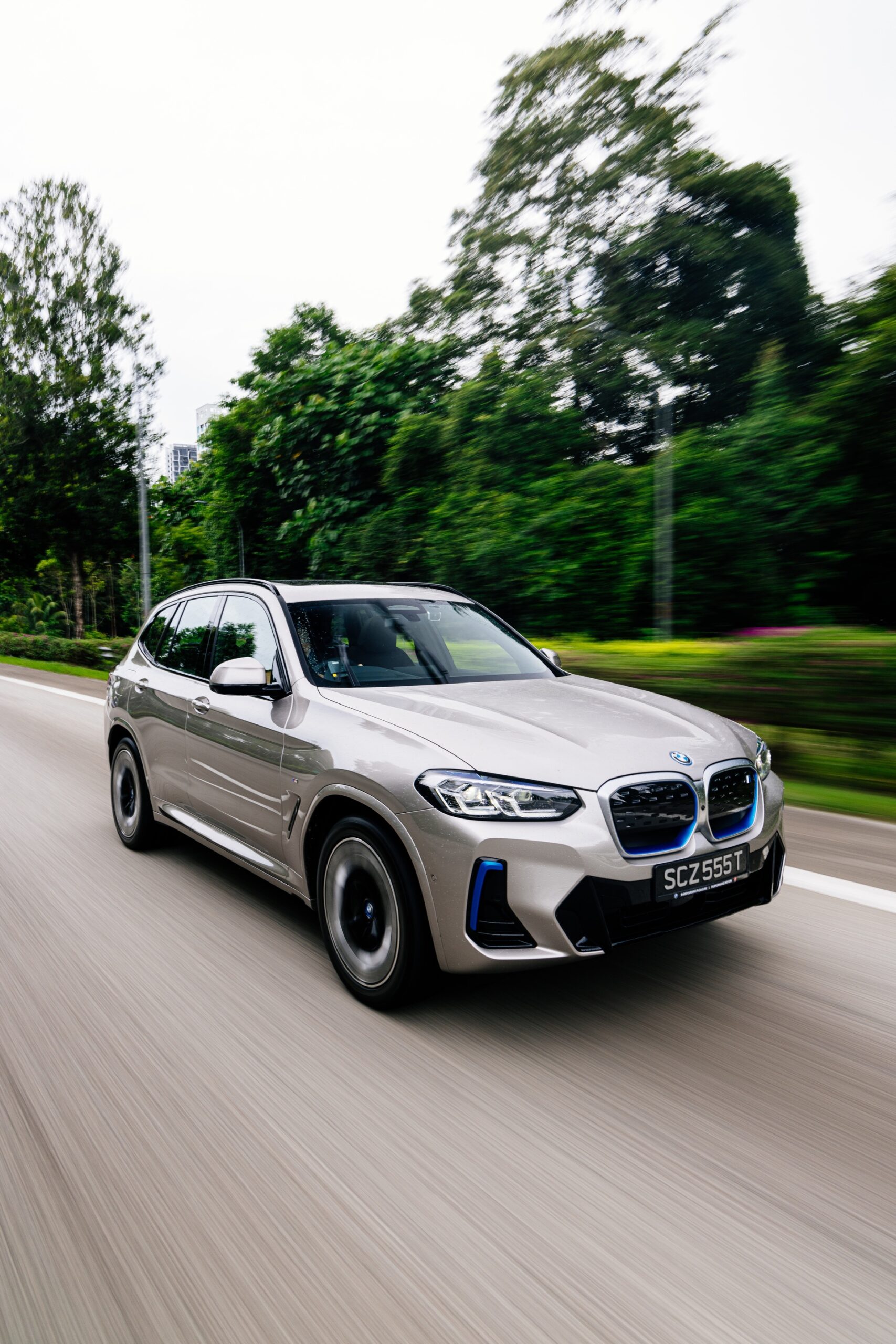 After its European debut, the 2022 BMW iX3 Facelift crossover SUV lands in Singapore for the local market launch. The car’s new design is showcased through an extensive photoshoot which emphasizes the sportiness of the facelifted electric SUV. The 2022 BMW iX3 now features a modified design for the headlights which are 10 millimeters slimmer than on the outgoing model. The kidney grille has gone through changes as well and it is now larger in size and featuring a single-piece frame. It is painted in the Pearl-effect Chrome with a few blue accents on the outer edges. The slats are now in-line with other BMW models and feature a mesh pattern.